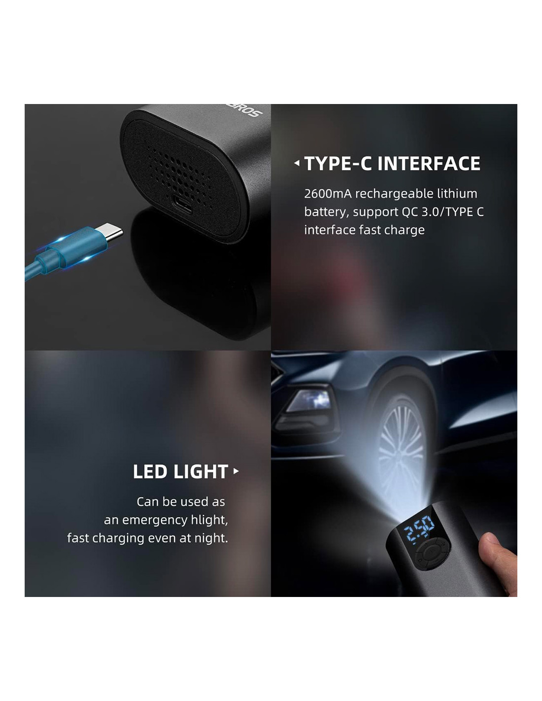 Elektrinio dviračio rutulinis siurblys 10 barų su LED ekranu + USB-C laidu, juodas
