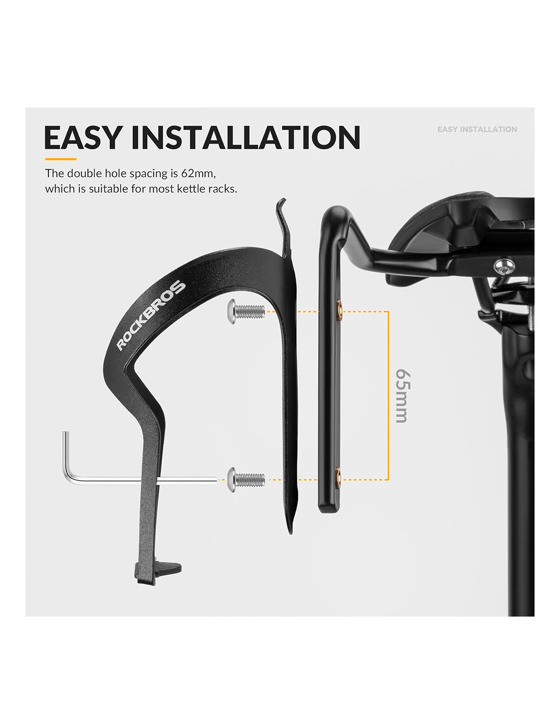 - - Leidžia pritvirtinti iki dviejų butelių laikiklių. Varžtų atstumas butelių laikiklių tvirtinimo taške yra 65 mm, todėl suderinamas su dauguma rinkoje esančių butelių laikiklių.