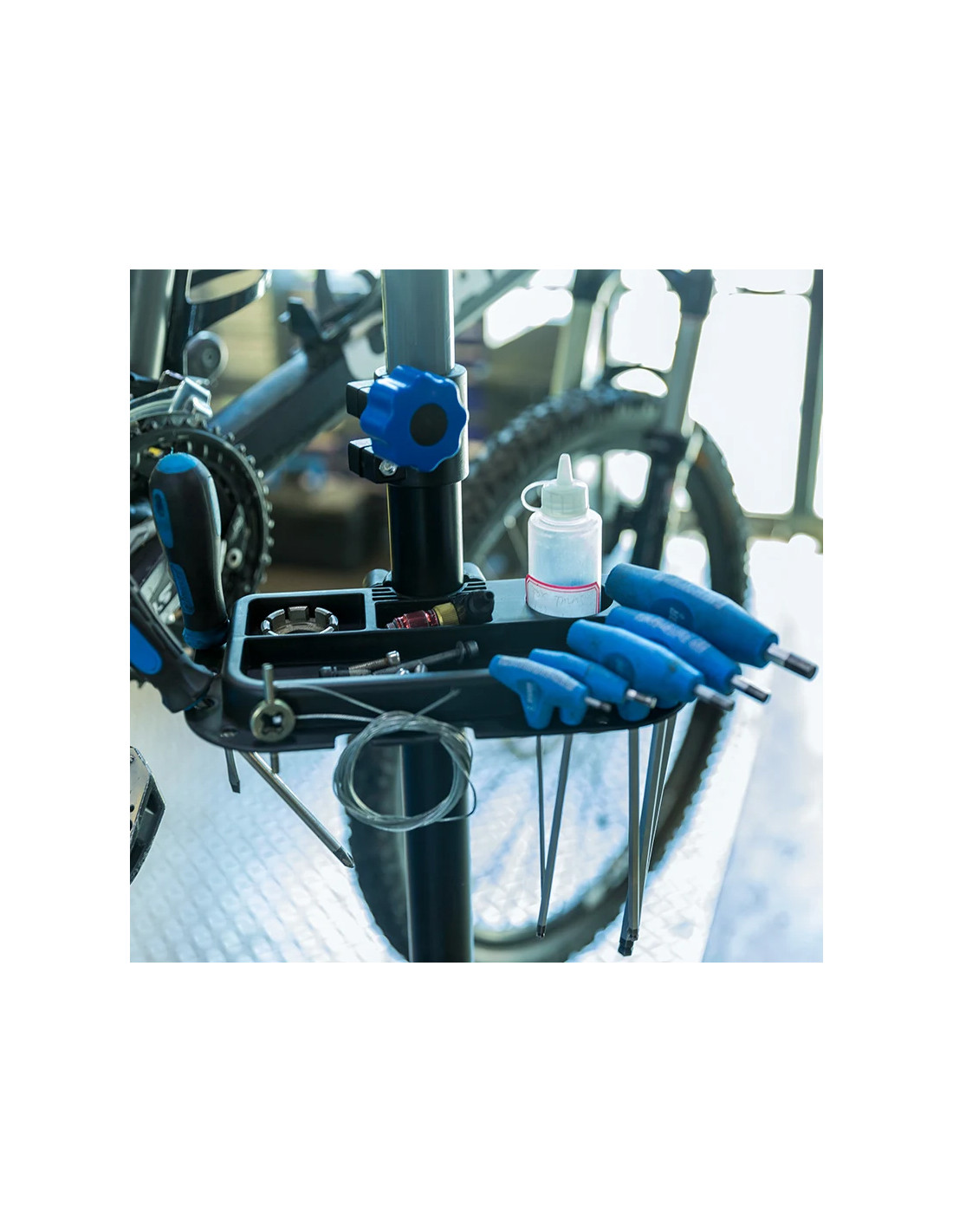 - - Padeda tvarkyti daiktus . Įmontuotas įrankių dėklas apsaugo nuo įrankių pametimo ir išardytų dviračio dalių.