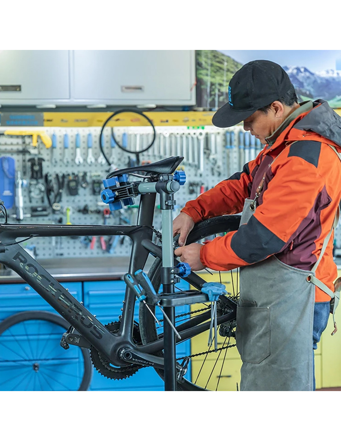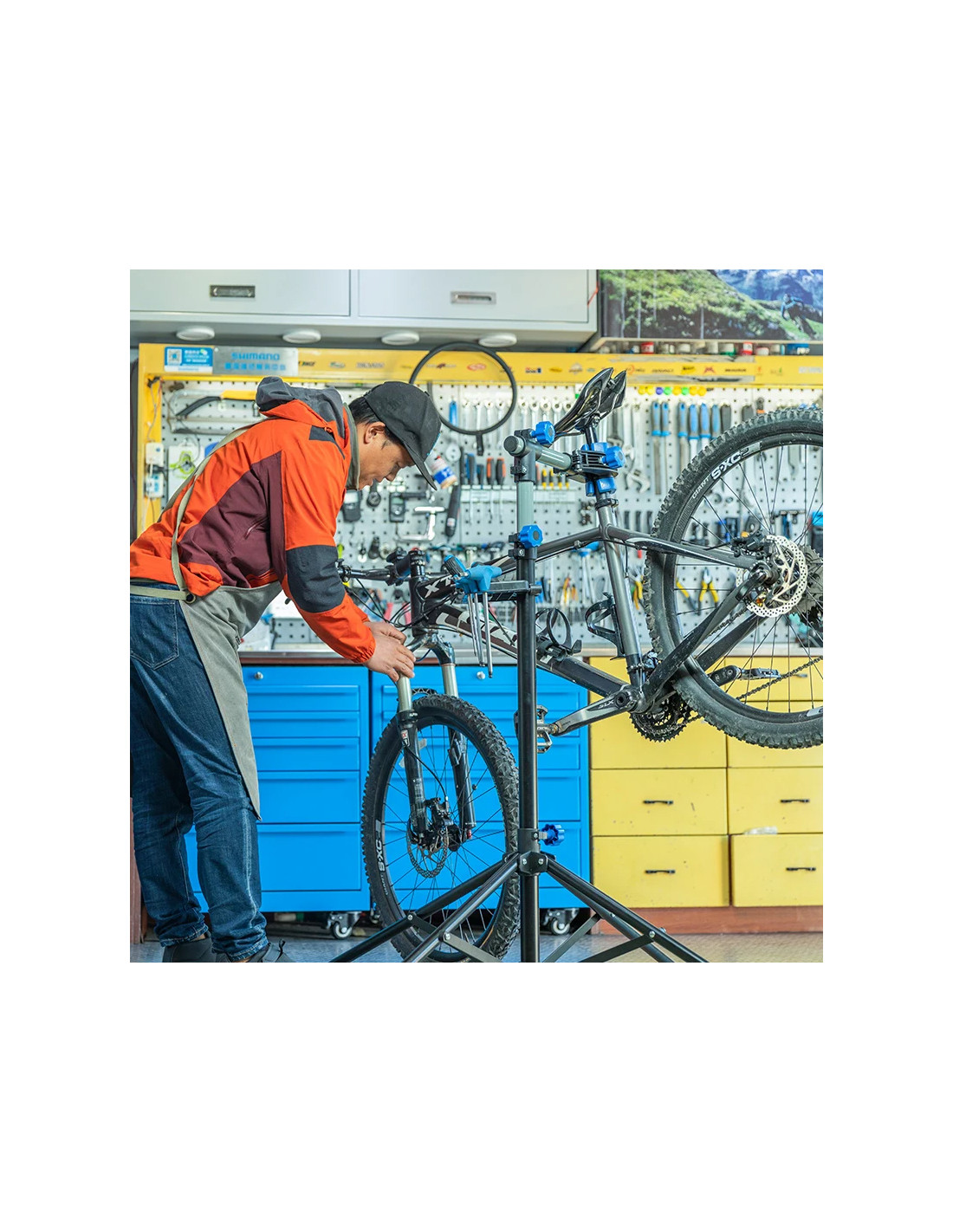 Dėl aukščio reguliavimo stovą galima pritaikyti prie jūsų ūgio, remonto vietos ar dviračio dydžio. Žandikauliai siekia iki 190 cm aukščio. Tai pašalina nereikalingus judesius ir leidžia visiškai atsidėti savo įrangos priežiūrai.