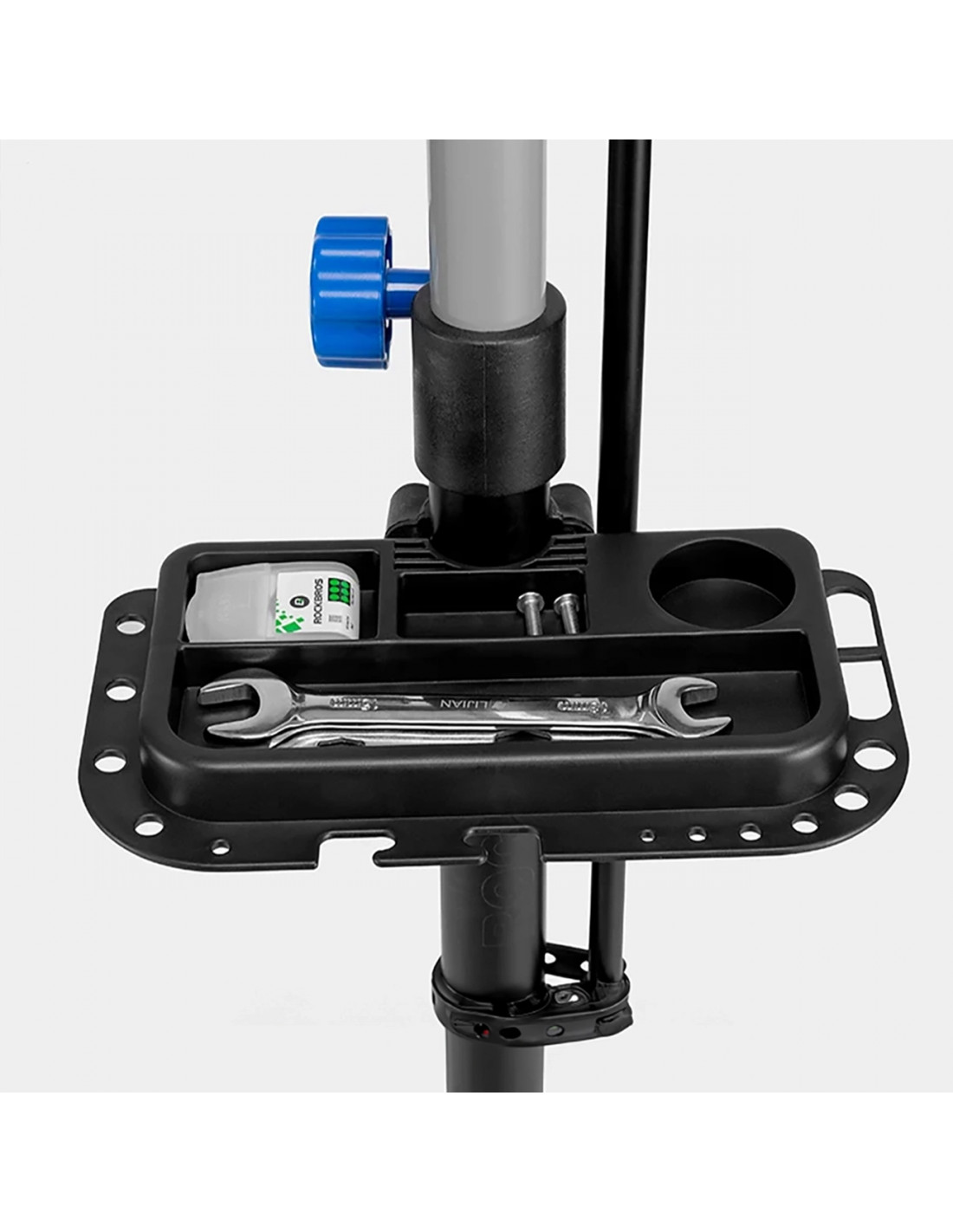 „Rockbros MP-02“ stovą galima laikyti sulankstytą iki 120 cm ilgio. Prireikus tiesiog išskleiskite stabilų stovą ir pritvirtinkite dviratį. Lengvai montuojama lentyna apsaugo nuo įrankių ir išardytų dviračio dalių pametimo. Ji taip pat turi skylutes raktams.