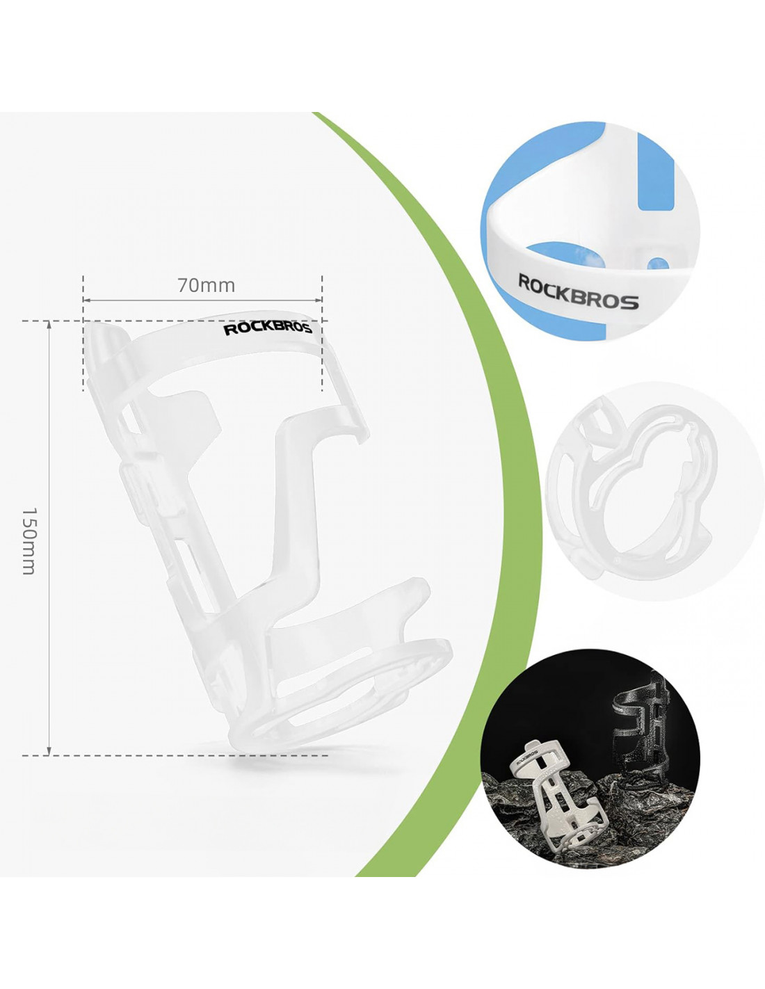 - - Užtikrina lengvą prieigą prie vandens . Lankstus „Rockbros“ butelių laikiklio dizainas leidžia jam pritaikyti butelius, kurių skersmuo yra nuo 51 mm iki 73 mm.