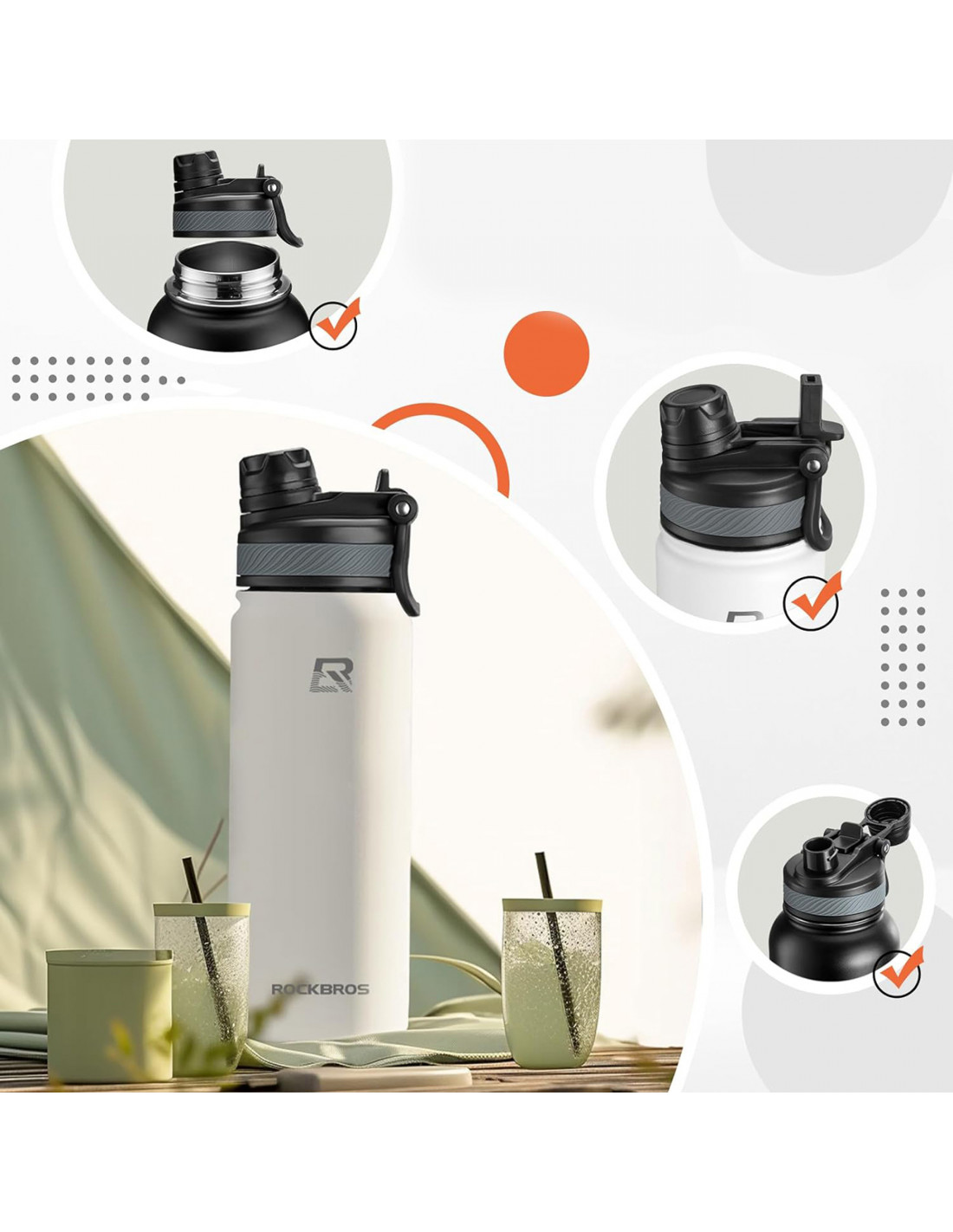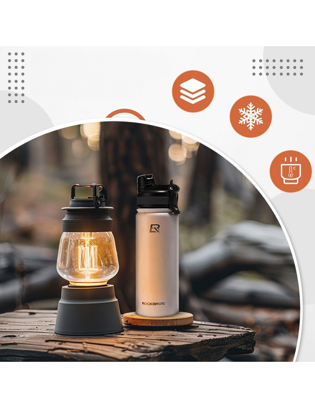 „Rockbros 35210029005“ vandens butelis išlaiko jūsų gėrimą karštą 12 valandų arba šaltą 24 valandas. Aukščiausios kokybės nerūdijančio plieno ir pažangios šilumos izoliacijos technologijos naudojimas užtikrina, kad jūsų gėrimas išliks tinkamos temperatūros visą dieną. Todėl jis puikiai tinka ilgoms kelionėms dviračiu, žiemos žygiams ar vasaros treniruotėms!