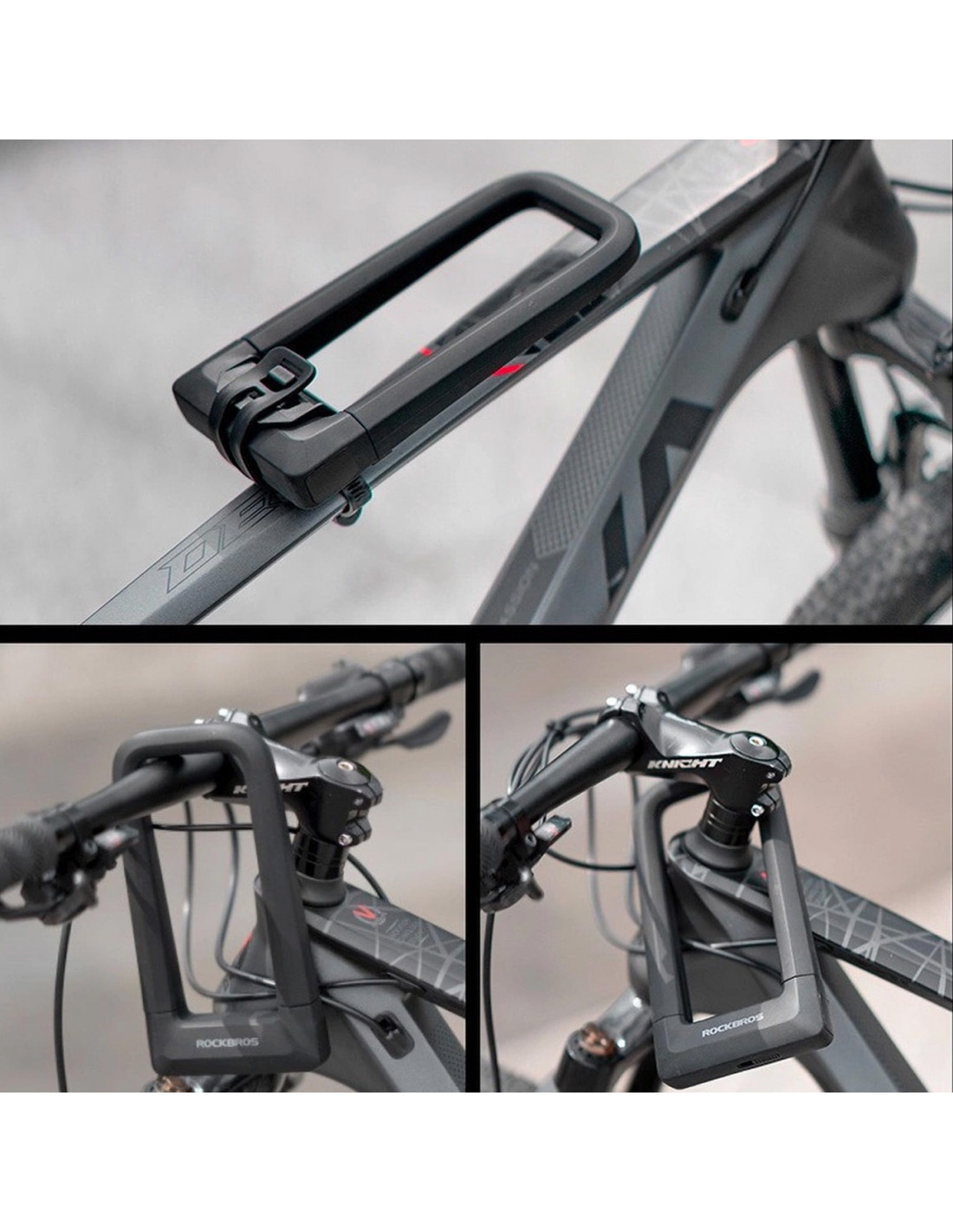 - - Praktiškas dviračio laikiklis leidžia lengvai transportuoti spyną . Spyna visada bus po ranka, be jokio papildomo svorio.
