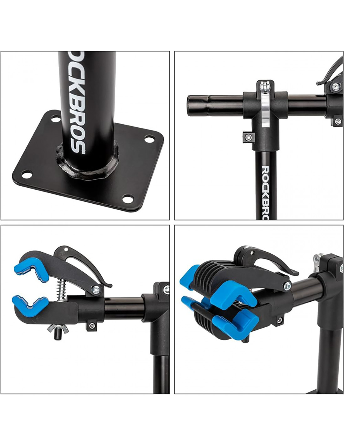 „Rockbros 27210002001“ stovą galima vertikaliai montuoti ant stalviršio arba horizontaliai ant sienos. Tai leidžia taupyti vietą ir lanksčiai išdėstyti stovą. Pridedami išsiplėtimo kaiščiai ir varžtai.
