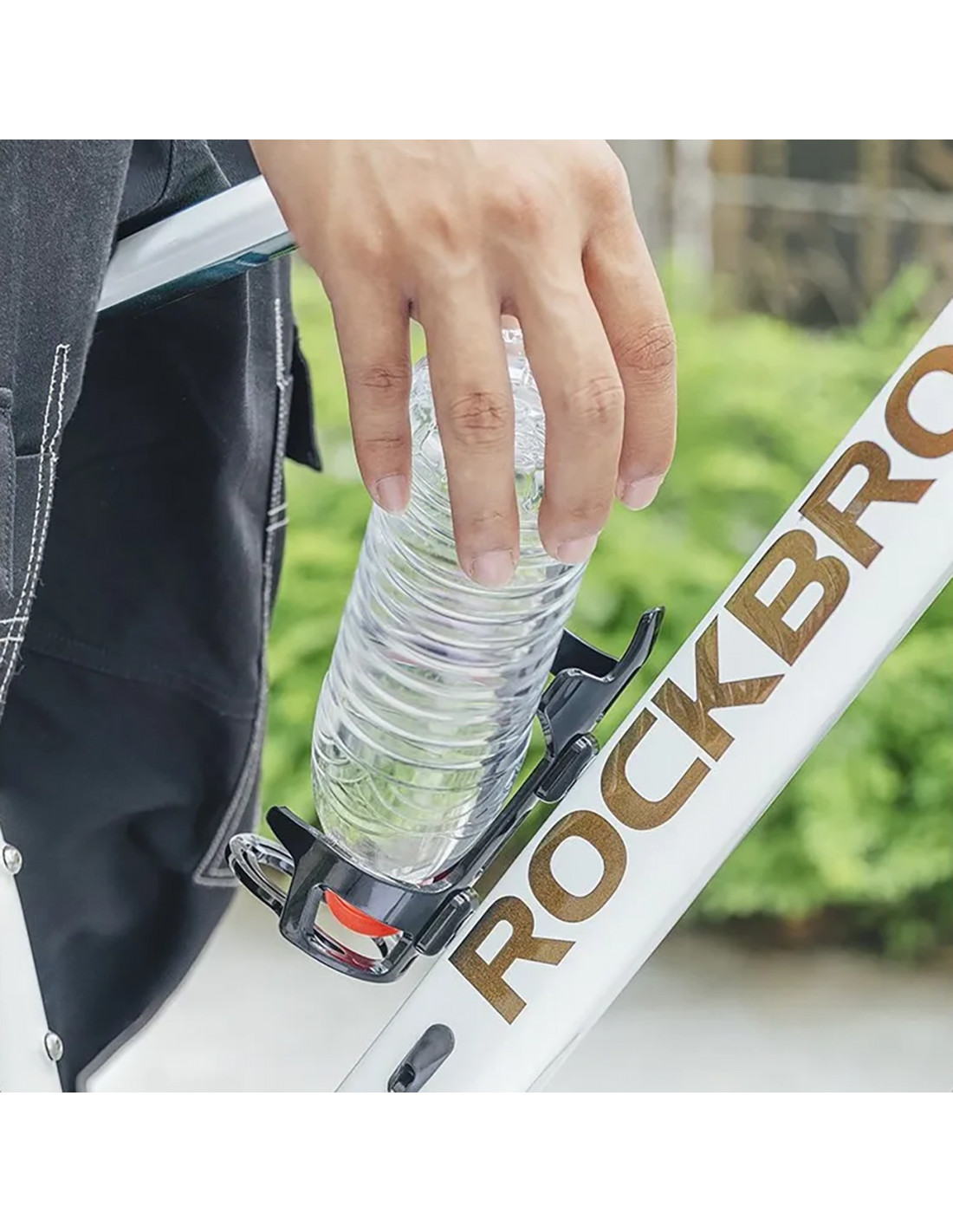 - - Užtikrina lengvą prieigą prie vandens . Lankstus „Rockbros“ butelių laikiklio dizainas leidžia jam pritaikyti butelius, kurių skersmuo yra nuo 51 mm iki 73 mm.