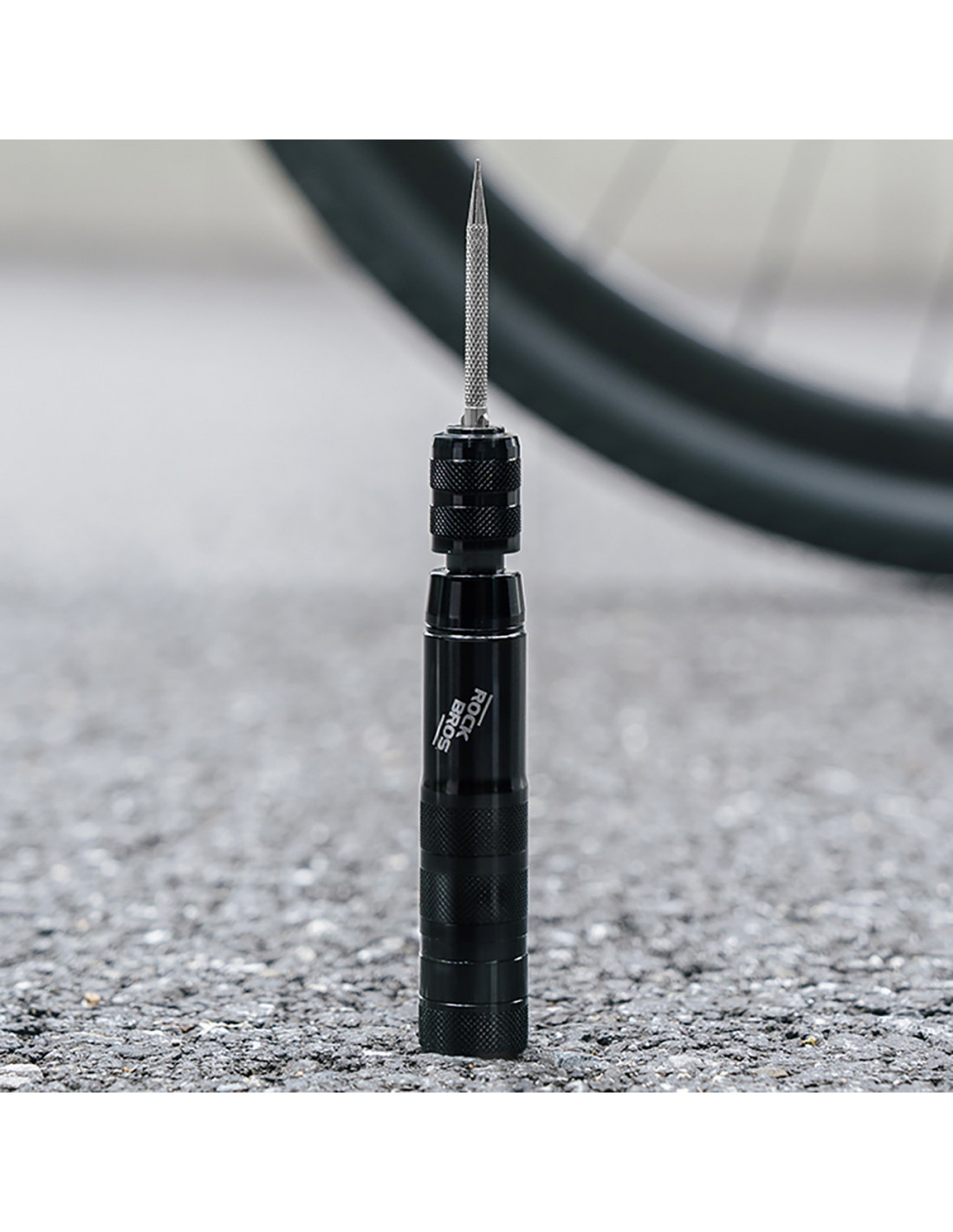 „Rockbros“ bekamerinių padangų remonto rinkinys yra kompaktiškas, tvirtas ir patikimas įrankis, kurį turėtų turėti kiekvienas dviratininkas. Pagamintas iš patvaraus aliuminio lydinio ir aprūpintas grūdinto anglinio plieno komponentais, jis leidžia greitai ir efektyviai remontuoti bekameres padangas bet kokiomis sąlygomis. Su trimis įrankių antgaliais ir penkiomis sandarinimo juostelėmis, pagamintomis iš aukštos kokybės vulkanizuoto kaučiuko, jis gali išspręsti įvairias problemas. Viskas telpa viename lengvame, patogiame dėkle su srieginiu dangteliu, kuris apsaugo nuo dulkių ir vandens. Ergonomiška rankena su neslystančia tekstūra leidžia lengvai naudoti, o greito atleidimo sistema reiškia, kad būsite pasiruošę važiuoti per kelias sekundes. Tai nepakeičiamas sprendimas tiek kasdienėms kelionėms, tiek ilgiems nuotykiams bekelėje.