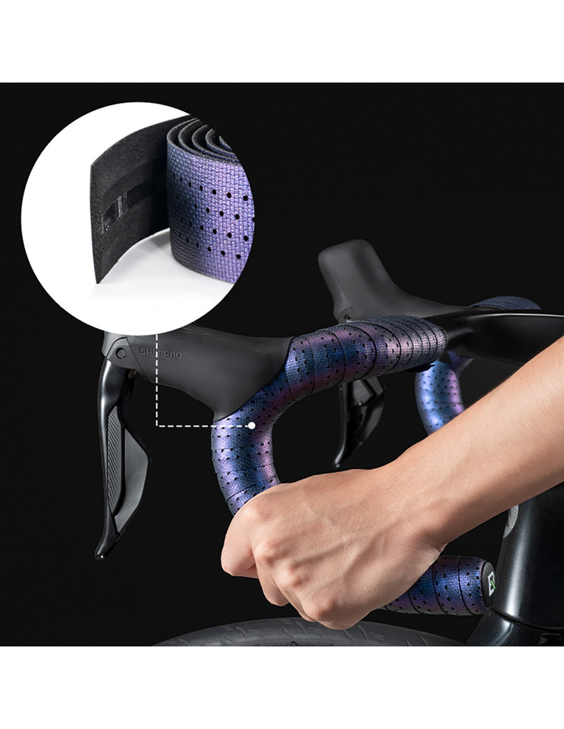 Unikali ryklio odos įkvėpta sukibimo tekstūra užtikrina saugų sukibimą net važiuojant per lietų ar mūvint pirštines.