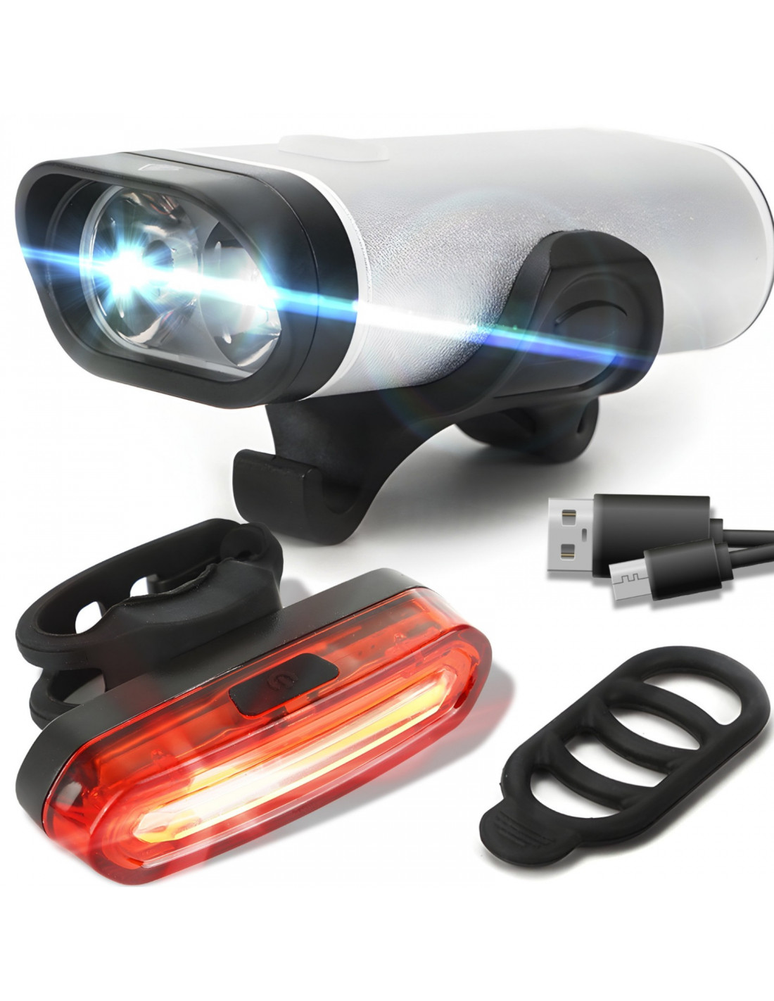 Aukštos kokybės, USB įkraunamas dviračio žibintas , padidinantis dviratininko saugumą važiuojant. Priekinis ir galinis žibintų komplektas užtikrina puikų matomumą dieną ir naktį, o galingi LED žibintai padarys jus geriau matomus kelyje. Žibintai yra atsparūs vandeniui, lengvai montuojami ir patvarūs.