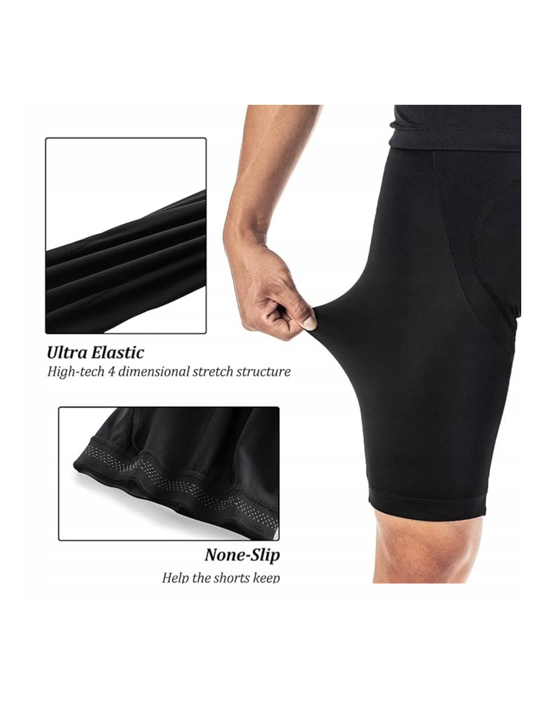 - - Apsaugo nuo pasislinkimo važiuojant . Neslystantis silikonas šortų apačioje išlaiko juos vietoje net ir intensyvaus važiavimo metu.