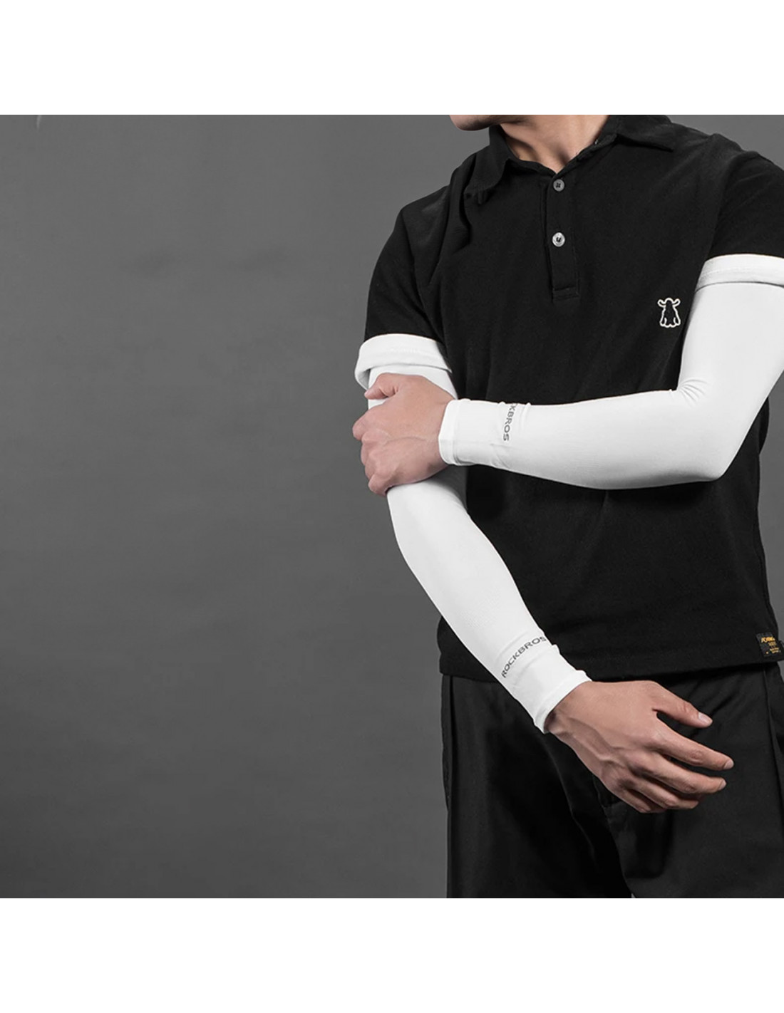 Dviratininko rankų šildytuvai nuo saulės su UPF50+ filtru, 2 vnt. - balti