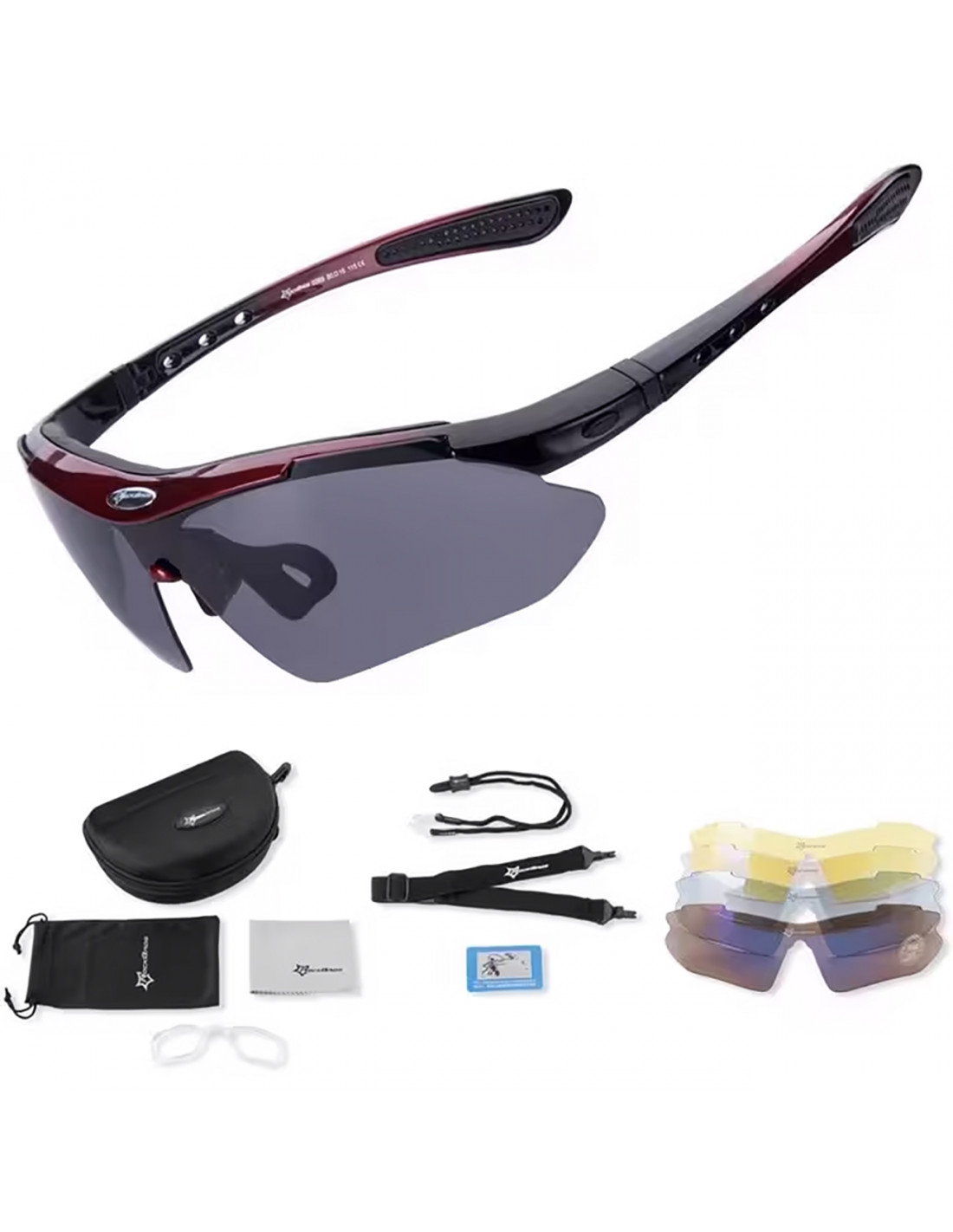 Poliarizuoti dviratininko akiniai 10001 - komplektas juodos ir raudonos spalvos