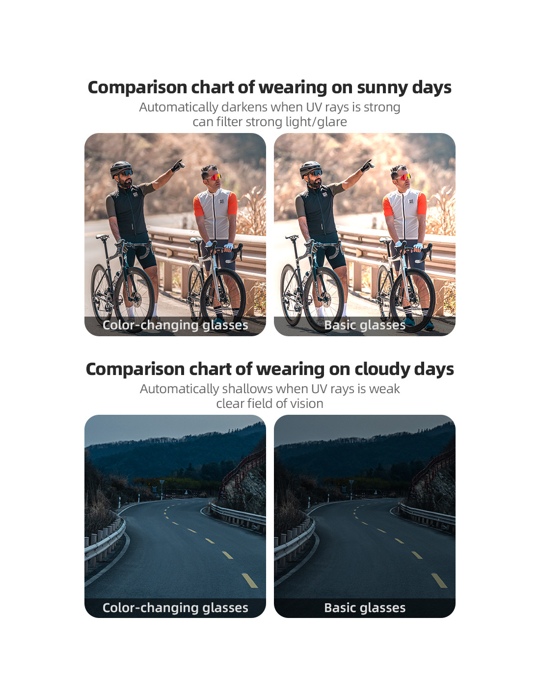 Balti fotochrominiai dviračių akiniai „Rockbros“ – puikus pasirinkimas bet kuriam aktyviam dviračių sporto entuziastui. Sukurti galvojant apie maksimalų komfortą ir apsaugą, jie derina funkcionalumą, stilių ir modernias technologijas. Dėl fotochrominių lęšių, kurie išmaniai prisitaiko prie kintančių apšvietimo sąlygų, užtikrinamas visiškas matomumas ir patogi važiavimas, nepriklausomai nuo oro sąlygų. Įmontuotas trumparegystės rėmelis leidžia akinius naudoti ir regėjimo sutrikimų turintiems žmonėms. UV400 filtras efektyviai apsaugo akis nuo UVA ir UVB spindulių, o lengvi TR90 rėmeliai užtikrina komfortą net ir ilgų kelionių metu. Dideli, itin atsparūs lęšiai ne tik apsaugo nuo vėjo ir dulkių, bet ir suteikia stiliaus. „Rockbros“ derina komfortą, patvarumą ir modernumą – puikiai tinka važinėjimui dviračiu, bėgimui ar žygiams pėsčiomis.
