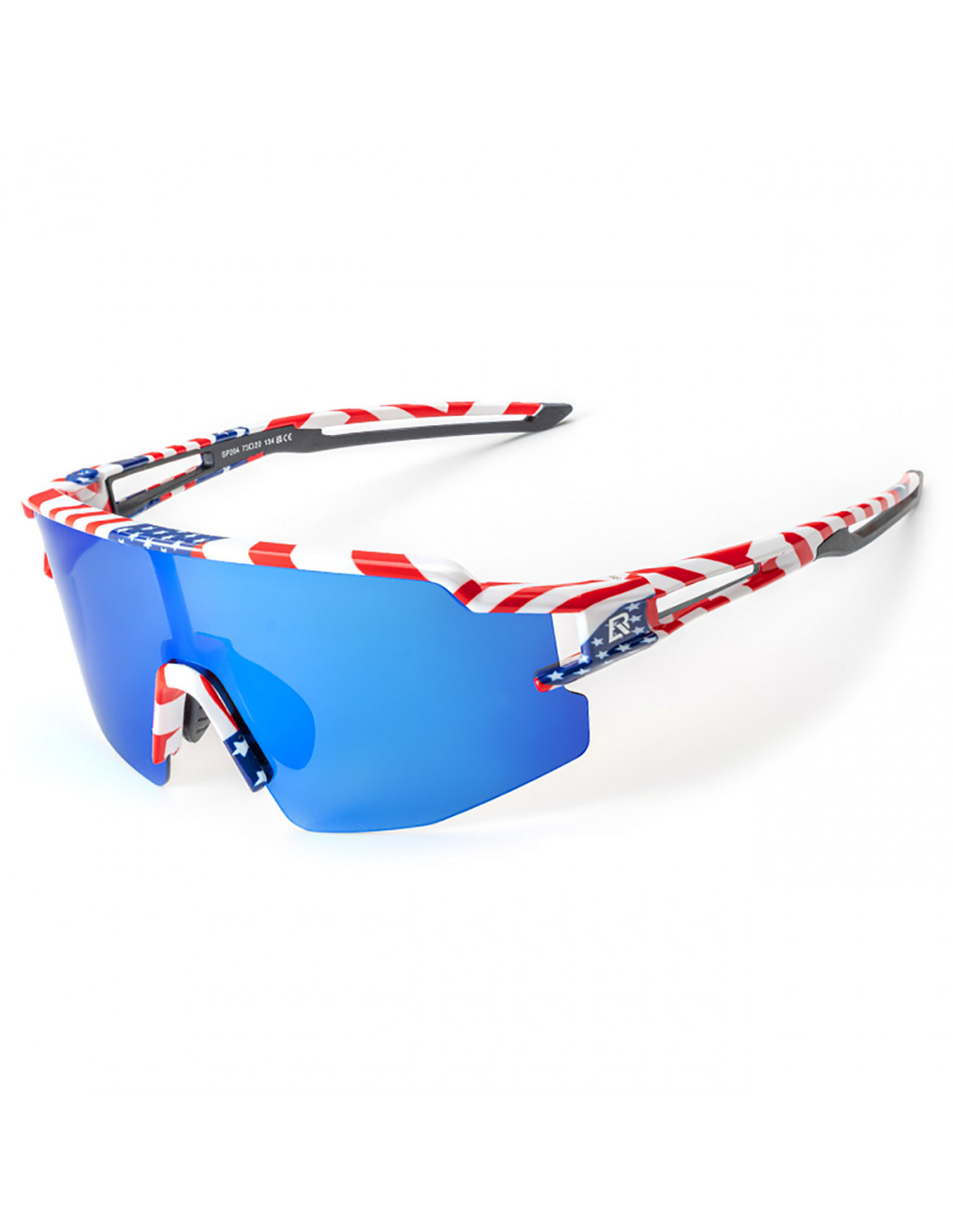 Poliarizuoti dviratininko akiniai su UV filtru ir dioptrijomis – JAV raštas, mėlyni