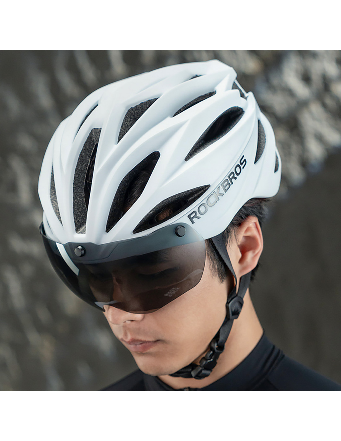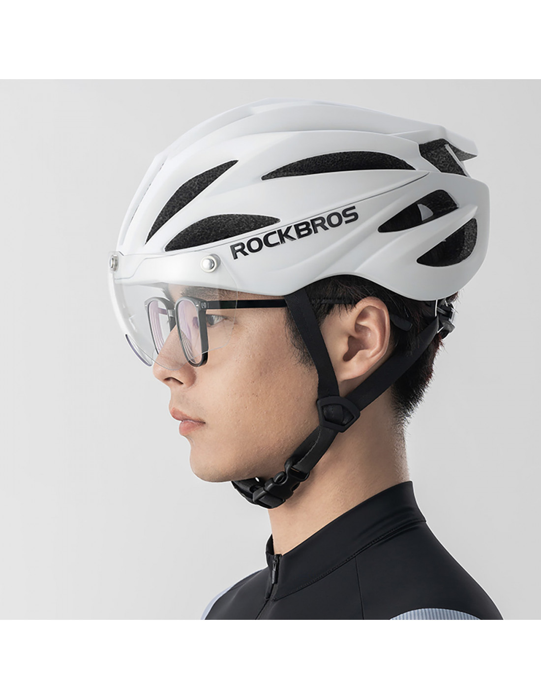 Baltas „Rockbros“ dviračio šalmas – tai unikalus modernaus dizaino, novatoriškų technologijų ir aukščiausio lygio apsaugos derinys. Dėl nuimamų akinių su magnetiniu tvirtinimu ir UV filtru galite pritaikyti savo važiavimo stilių prie sąlygų ir poreikių – nuo greitų važiavimų iki atsipalaidavimo ar važiavimo mieste. Šalmas pagamintas iš patvaraus PC korpuso ir EPS putplasčio, užtikrinančio efektyvią smūgių amortizaciją. Novatoriškas joninių+reg sidabro jonų pamušalas apsaugo nuo nemalonių kvapų ir yra lengvai nuimamas bei valomas. Papildomos daugiakanalės ventiliacijos angos pagerina oro srautą ir komfortą. Reguliuojamas apimtis leidžia puikiai prisitaikyti prie bet kokios galvos formos (58–62 cm). Lengvas dizainas (305 g) ir tokios detalės kaip nuimama smakro apsauga, greito atsegimo sagtis ir aerodinaminis siluetas daro šį šalmą puikiu kompanionu tiek mėgėjams, tiek sportuojantiems dviratininkams.
