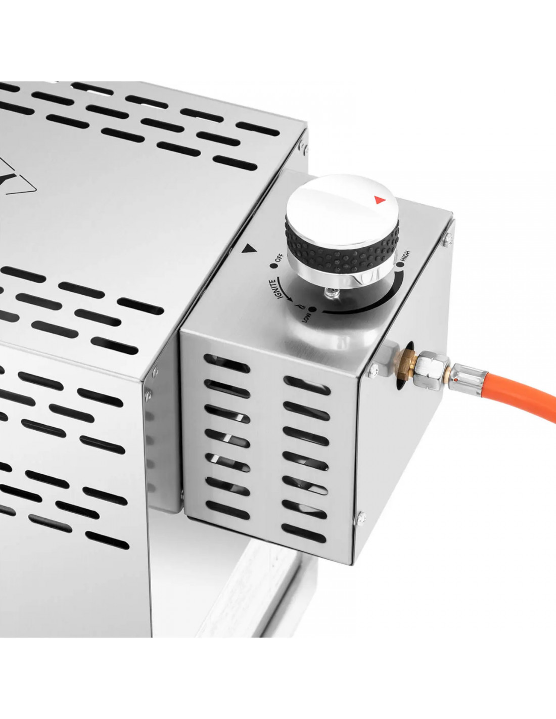 - - Nerūdijančio plieno dujinė kepsninė veikia tiek propanu, tiek butanu, todėl puikiai tinka maitinimo įstaigoms ir naudojimui lauke.