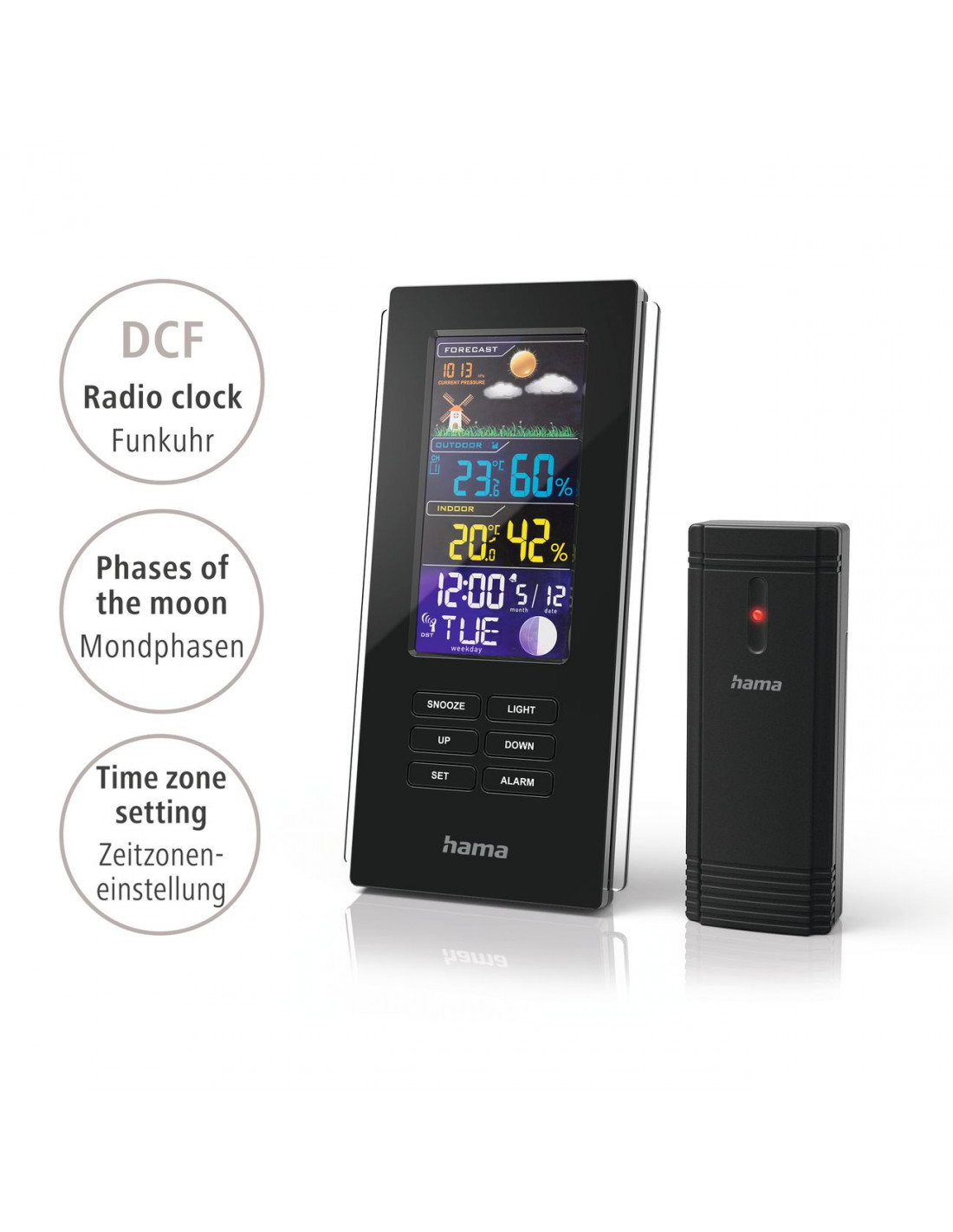 „Hama Color Edge“ meteorologinė stotelė, termometras, higrometras, mėnulio fazė, laikrodis-radijas - juodas