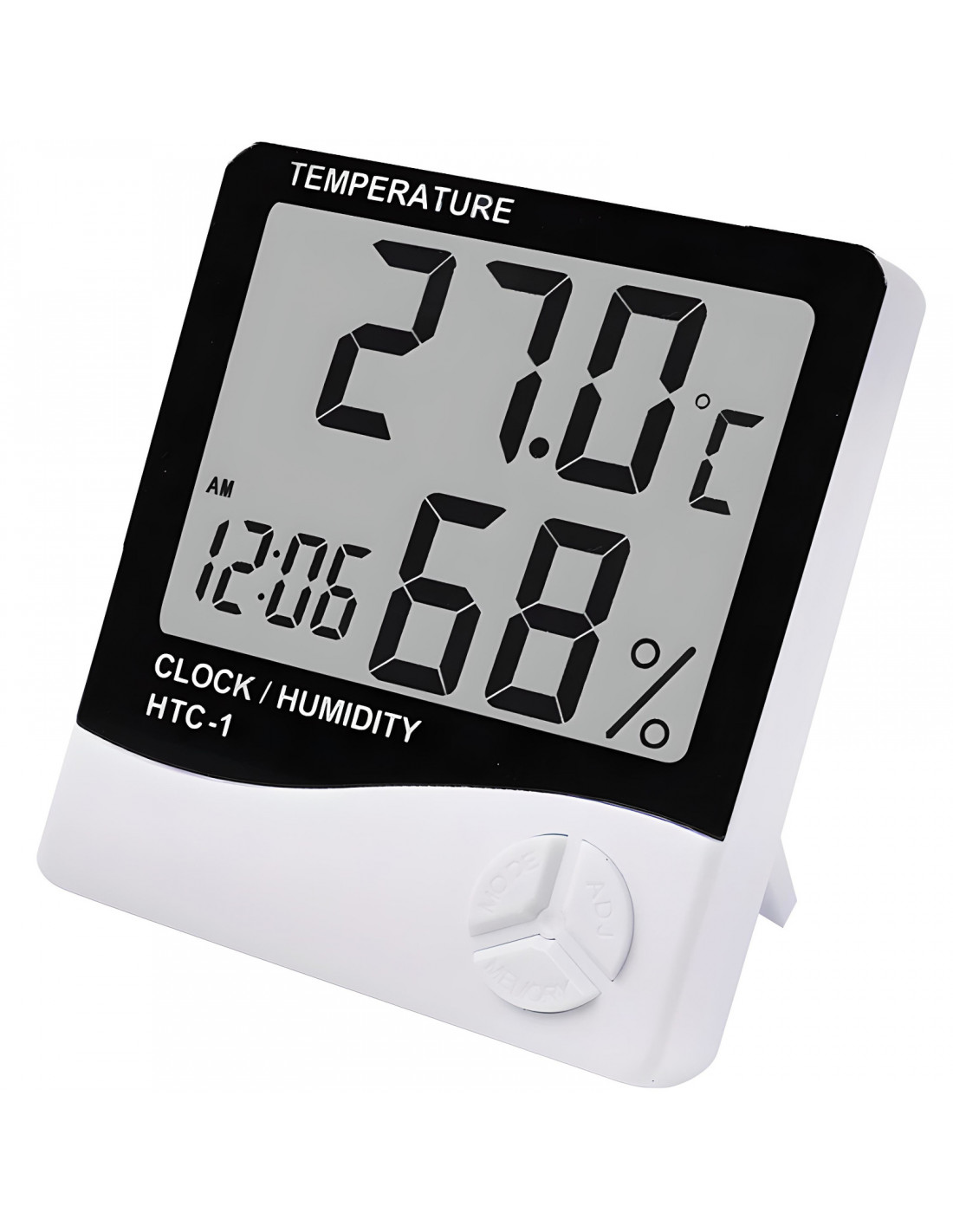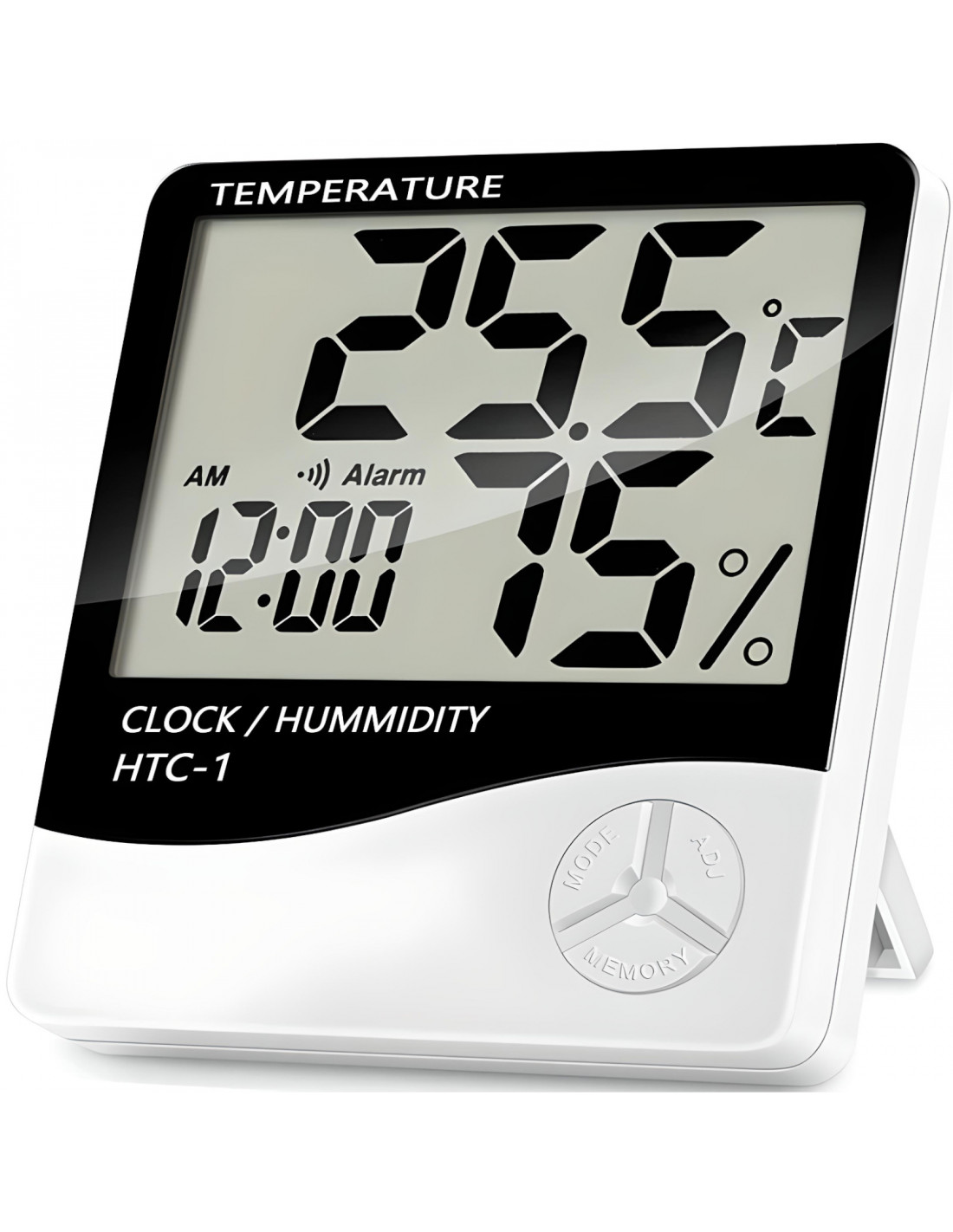 Šis elektroninis termometras ir higrometras yra patogus prietaisas kasdieniam patalpų temperatūros ir drėgmės stebėjimui. Jis turi didelį, lengvai įskaitomą LCD ekraną, laikrodį, kalendorių ir žadintuvo funkciją, pagamintas iš balto plastiko ir gali būti pastatytas ant stalviršio arba pakabintas ant sienos. Puikiai tinka namams, biurui ar kitoms gyvenamosioms erdvėms.