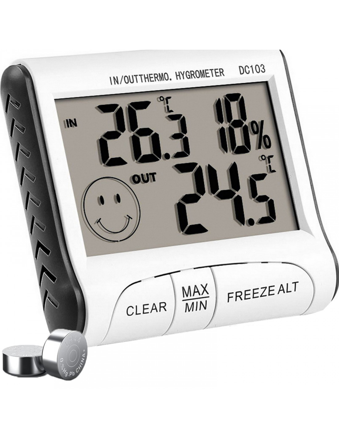 Aukštos kokybės, kompaktiška meteorologinė stotelė su aiškiu LCD ekranu . Ji leidžia stebėti temperatūrą, drėgmę, datą ir laiką . Ji turi maksimalios ir minimalios matavimo atminties funkciją ir galimybę nustatyti žadintuvą. Temperatūros skalė gali būti rodoma Celsijaus arba Farenheito laipsniais. Įrenginys pagamintas iš balto ABS plastiko, estetiškai patrauklus ir papildys įvairius interjerus. Dėl įmontuoto magneto ir stovo jį galima pastatyti bet kur – ant stalo, lentynos ar magnetinio paviršiaus.