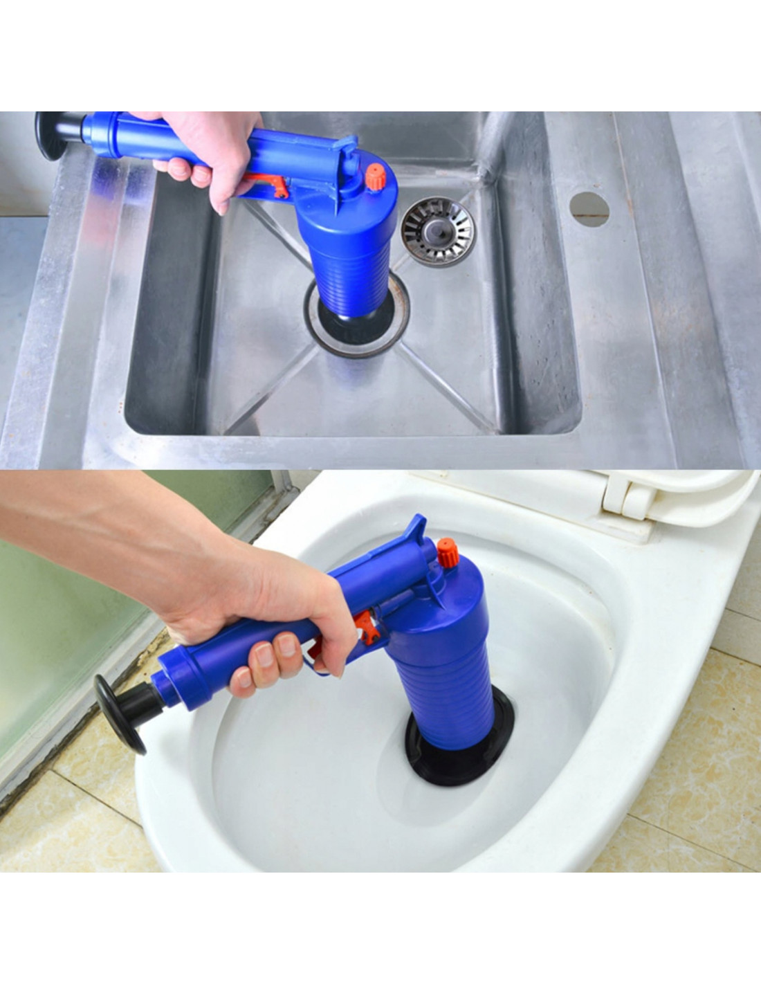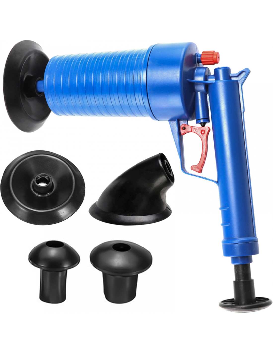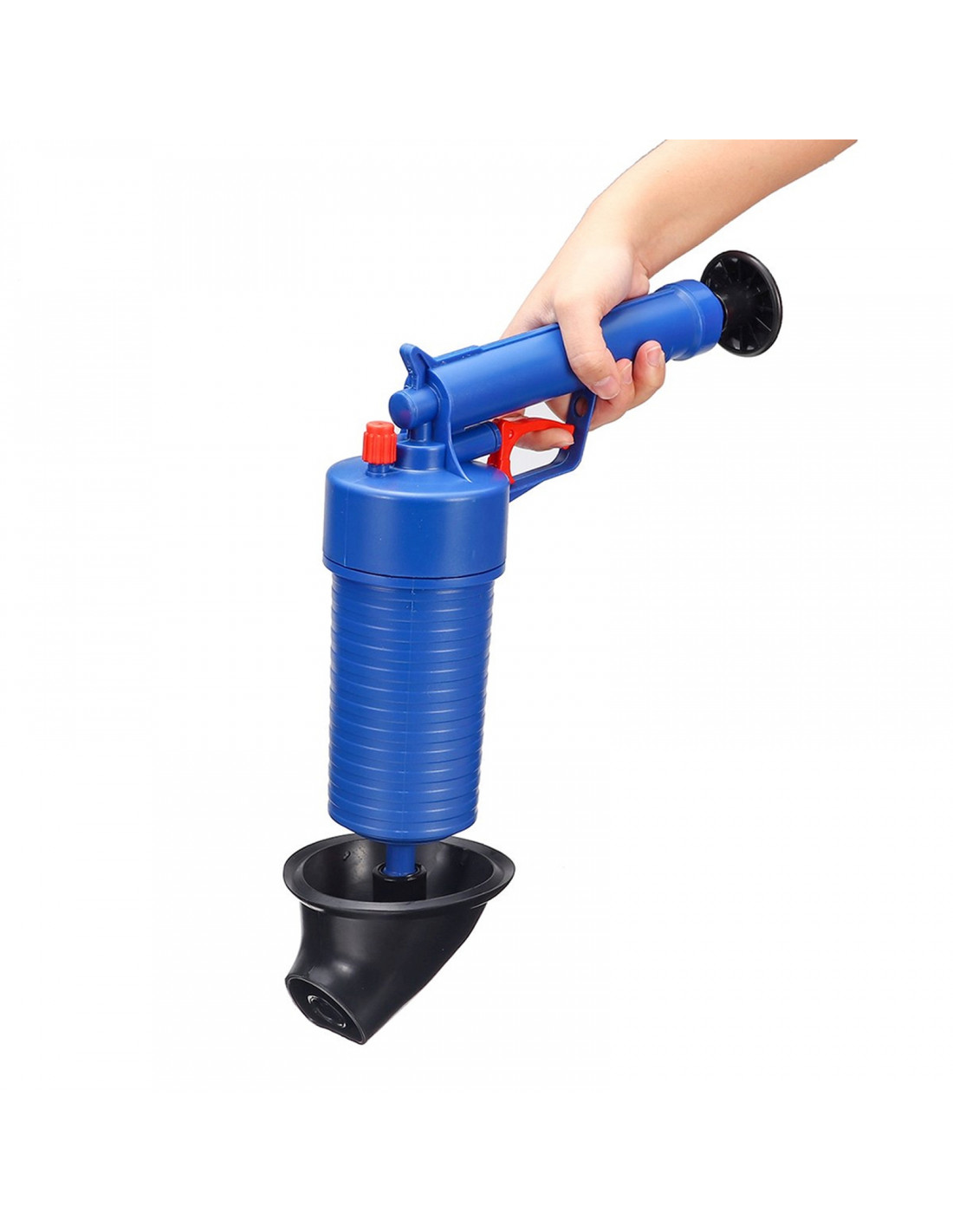 Šis slėginis pistoleto tipo siurblys skirtas mechaniškai atkimšti kanalizaciją nenaudojant cheminių medžiagų. Jis veikia suslėgtu oru ir pasiekia iki 3,5 baro slėgį . Idealiai tinka naudoti namuose, efektyviai pašalina kamščius iš tualetų, kriauklių, vonių, dušų ir praustuvų. Ergonomiškas dizainas užtikrina patogų suėmimą ir tikslų veikimą. Įrenginys yra visiškai mechaninis, nereikalauja elektros energijos ir yra daugkartinio naudojimo. Rinkinį sudaro keturi guminiai antgaliai ir apsauginė plėvelė.