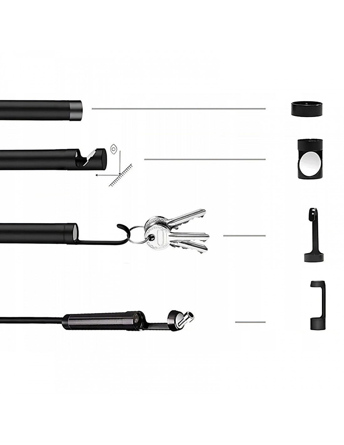 Ši endoskopinė kamera leidžia greitai ir tiksliai nustatyti gedimų vietą sunkiai pasiekiamose vietose, tokiose kaip vamzdžių kabeliai, mašinų dalys ar vidinės instaliacijos. Dėl lanksčiojo kabelio, reguliuojamų šviesos diodų ir didelės skiriamosios gebos ji tinka tiek namų, tiek profesionaliam naudojimui. Patvarus plastikinis korpusas ir silikoninė apdaila užtikrina patogų naudojimą ir yra atsparios vandens purslams.