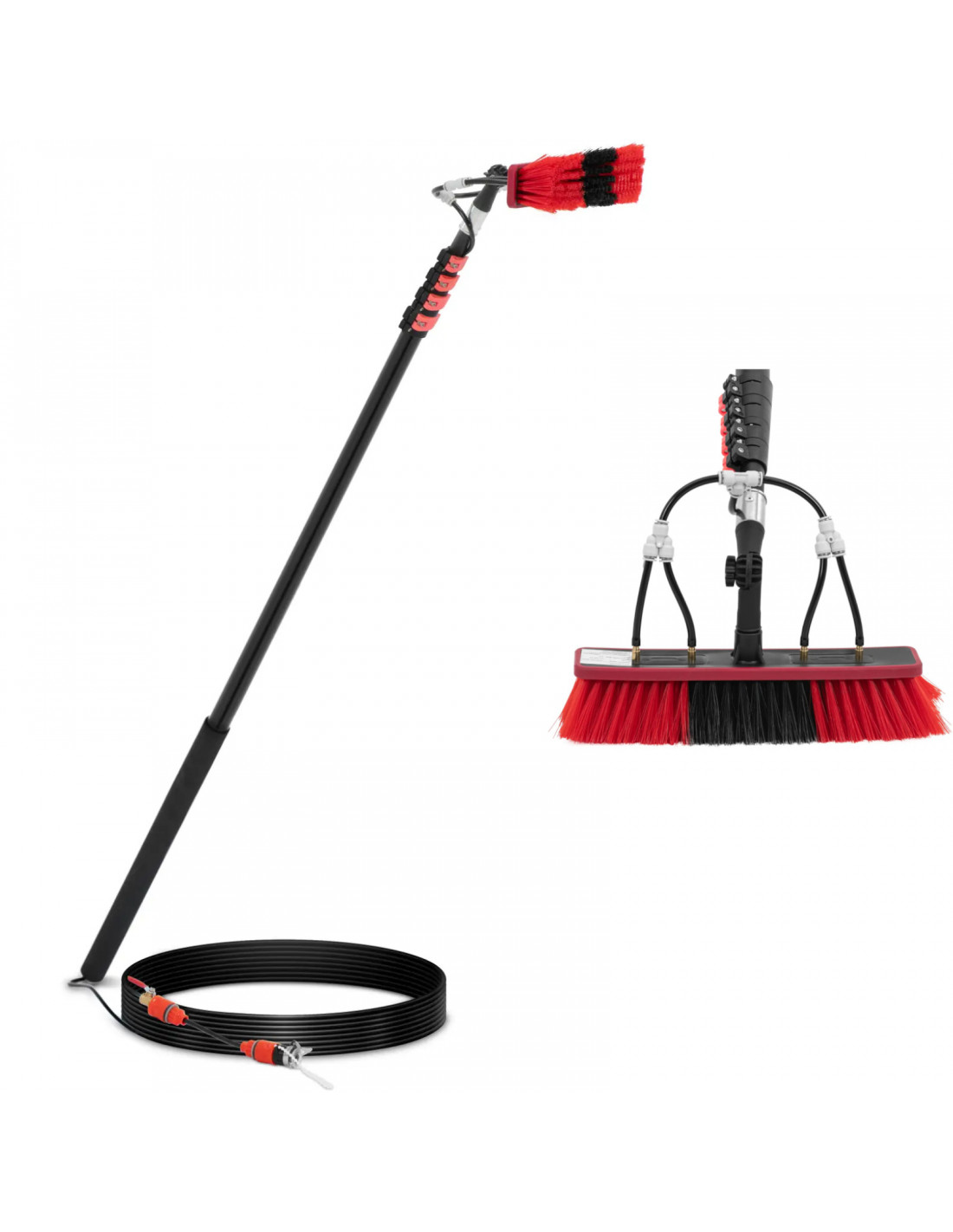 - - Teleskopinį plovimo šepetį galima sutrumpinti arba pailginti 175–720 cm diapazone, kad pasiektų visus stiklinių fasadų, fotovoltinių plokščių ar langų kampus,