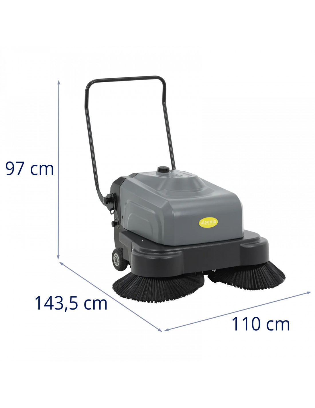 „Ulsonix“ akumuliatorinė šlavimo mašina yra idealus sprendimas dideliems plotams, tokiems kaip dirbtuvės, sandėliai, įvažiavimai, takai ir automobilių stovėjimo aikštelės. Jo baterijos veikimo laikas yra iki 6 valandų , užtikrinant optimalius rezultatus net ir nuolat naudojant. Sukurta patogumui ir patogumui, šlavimo mašinos šepečiai ir siurbimo galia reguliuojami vos keliais jungikliais. Įrenginys pasižymi įspūdingu našumu. 300 W galia suka du šepečius optimaliu greičiu, kuris kartu su nedideliu kiekiu valymo priemonės efektyviai atlaisvins įsisenėjusius nešvarumus. 100 W siurbimo įrenginys surenka šiukšles į 35 litrų talpos konteinerį . Dėl šių parametrų įrenginys gali valyti paviršius iki 4000 m²/h valymo efektyvumu. Integruota vandens purškimo sistema pagreitina grindų valymą. Ji drėkina paviršių ir padeda sumažinti dulkių kiekį. Aukštos kokybės HEPA filtras taip pat sulaiko smulkias dulkių daleles ir užtikrina geresnę oro kokybę.