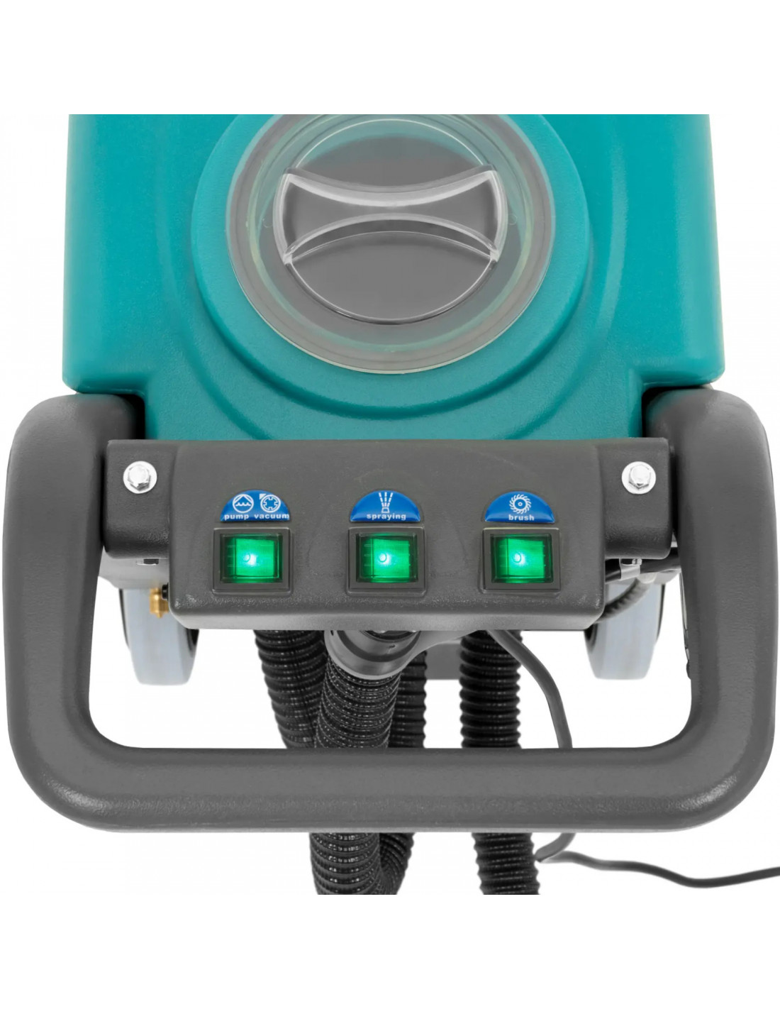 - - Įrenginys su keturiais antgaliais, kurių slėgis yra 2 barai, kad vanduo būtų tolygiai paskirstytas, 40 cm pločio apvaliu šepečiu, kurio greitis yra 1100 aps./min., ir 1000 W varikliu, užtikrinančiu puikią siurbimo galią,