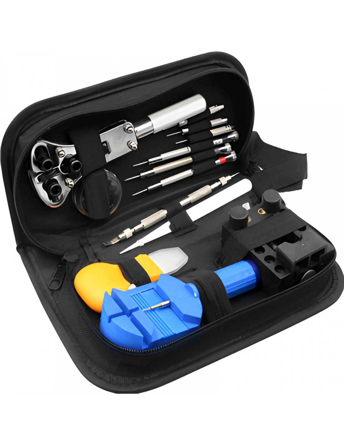 Profesionalus laikrodininko rinkinys , skirtas savadarbiam laikrodžių remontui, priežiūrai ir reguliavimui. Idealiai tinka tiek mėgėjams, tiek patyrusiems naudotojams. Visi įrankiai pagaminti iš patvaraus nerūdijančio plieno ir sudėti į patogų užtraukiamą dėklą . Į rinkinį įeina baterijos keitimas, apyrankės sutrumpinimas, korpuso nugarėlės atplėšimas ir spyruoklinio strypo surinkimas bei išardymas. Dėl kompaktiško dėklo dydžio rinkinį patogu laikyti ir transportuoti.