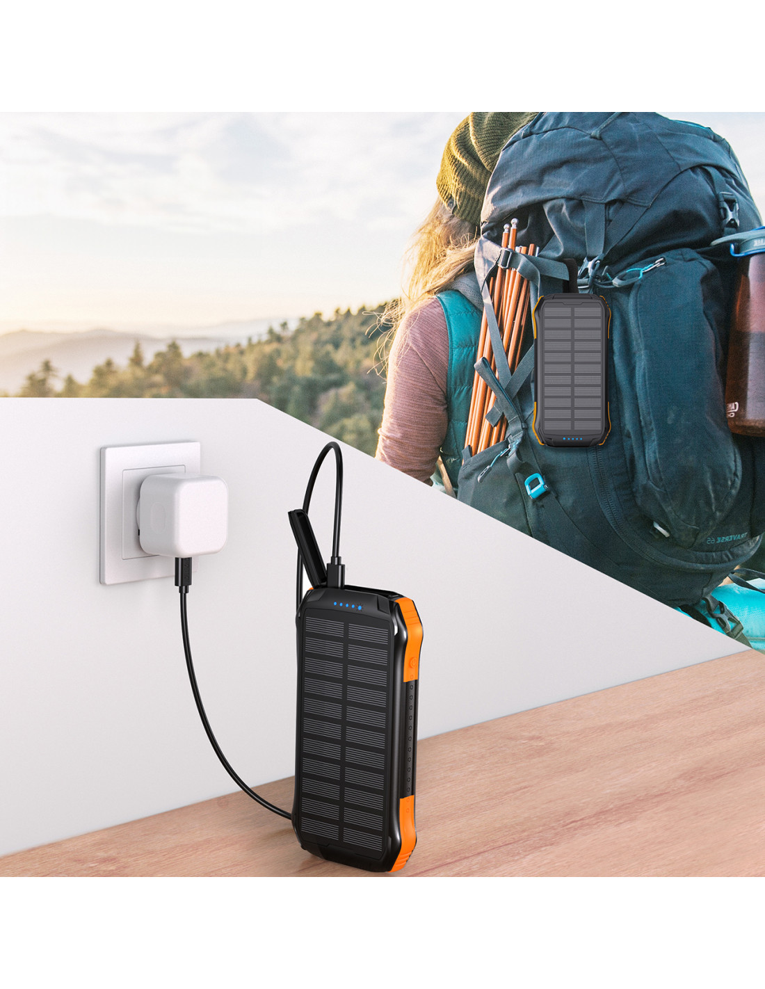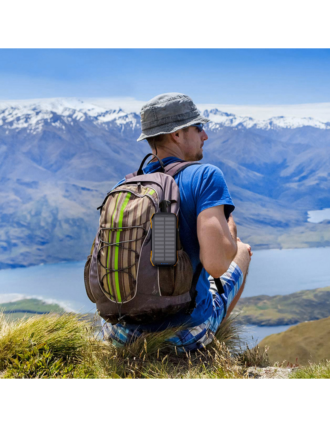 - - Saulės energija varomas išorinis įkroviklis 10000 mAh, 2x USB-A - juodas ir oranžinis