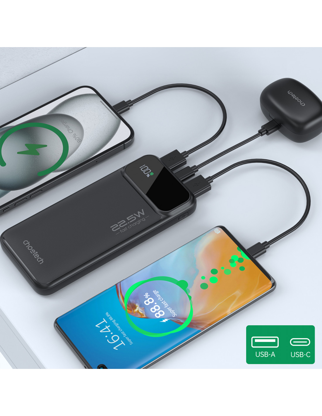 „Choetech B728 10000mAh“ išorinė baterija yra puikus sprendimas tiems, kuriems reikia patikimo maitinimo šaltinio keliaujant, darbe ar intensyviai naudojant mobiliuosius įrenginius. Dėl didelės 10000 mAh talpos ši kompaktiška išorinė baterija gali daugkartinio išmaniųjų telefonų, planšetinių kompiuterių ir net nešiojamųjų kompiuterių įkrovimo. Palaikymas 22,5 W PD greitajam įkrovimui ir universalūs USB-A bei USB-C prievadai užtikrina, kad jūsų įrenginiai bus paruošti naudoti akimirksniu. LED indikatorius leidžia stebėti visą baterijos lygį, o elegantiškas, juodas dizainas daro ją ne tik funkcionalią, bet ir stilingą.