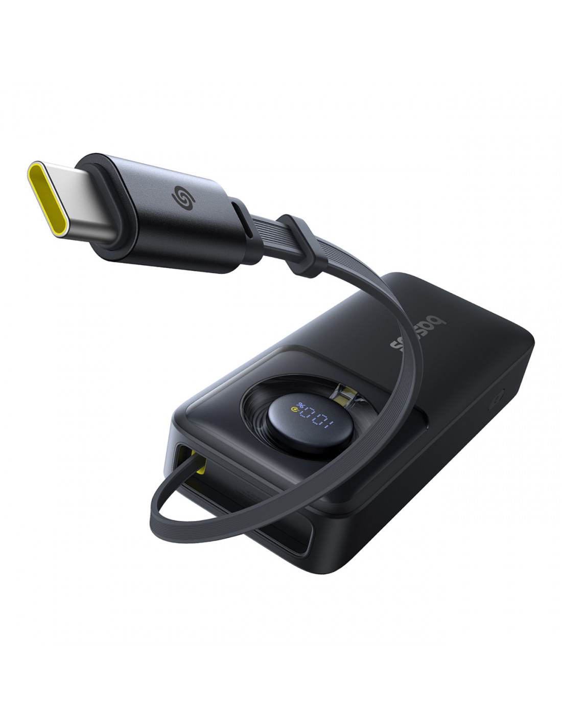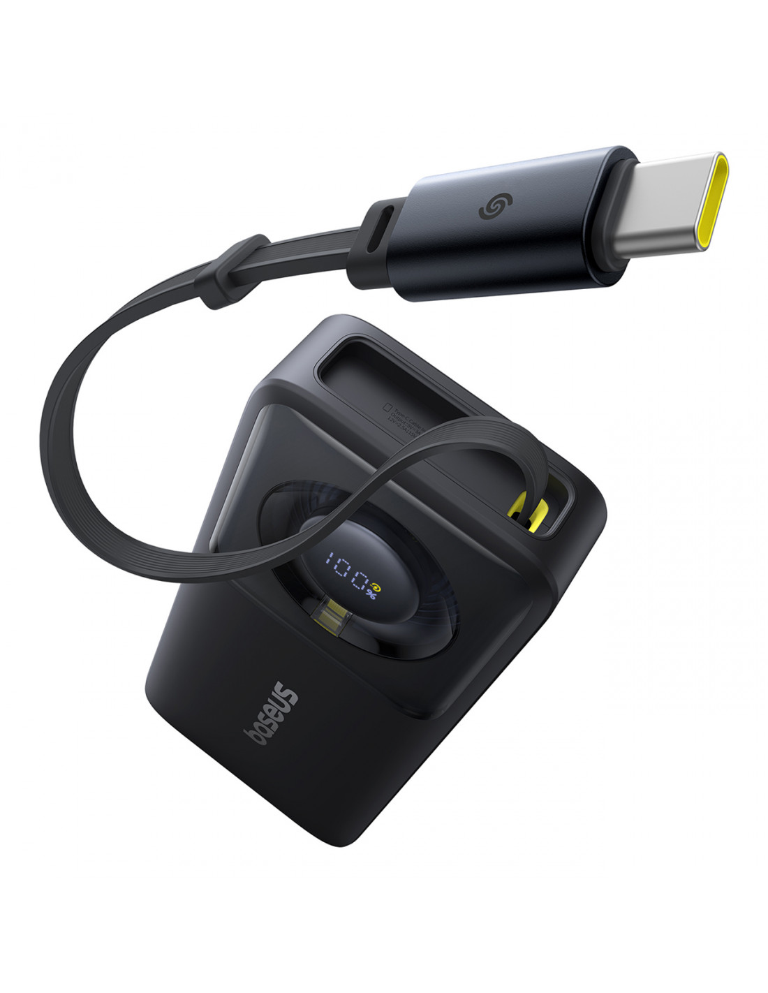 „Free2Pull“ 10000 mAh 30 W išorinė baterija su USB-C prievadu ir ištraukiamu USB-C laidu – juoda