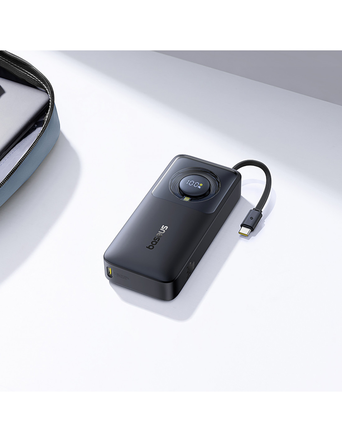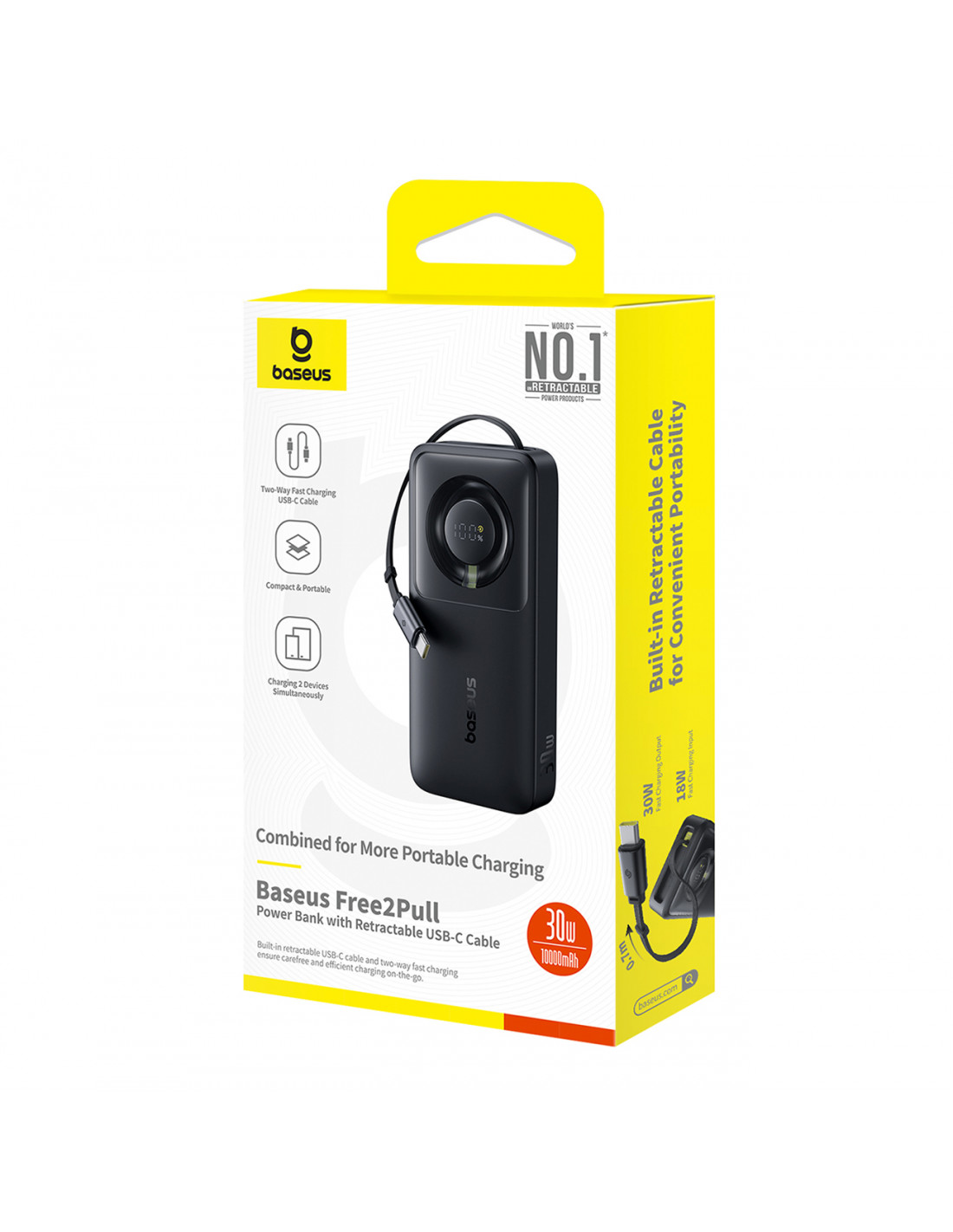„Baseus Free2Pull“ išorinė baterija lengvai prailgins jūsų telefono ar belaidžių ausinių veikimo laiką. Dėl integruoto, ištraukiamo 70 cm USB-C laido, įkrovimas kelyje yra be rūpesčių ir nesivelia. Pavyzdžiui, 10 000 mAh talpos laido užteks beveik du kartus įkrauti „iPhone 15 Pro“. Greitasis prievadas ir įvesties / išvesties laidas leidžia įkrauti iki 30 W galia, o pažangios saugumo funkcijos apsaugo nuo visų grėsmių. Galimybė vienu metu įkrauti du įrenginius daro „Baseus Free2Pull“ idealiu pasirinkimu dažnai keliaujantiems.