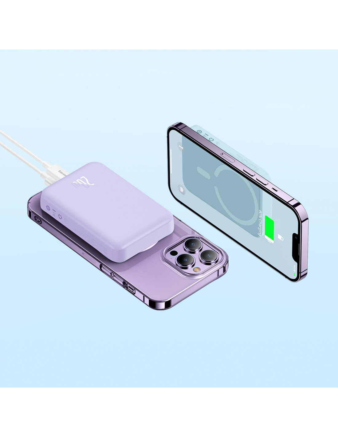 „Baseus Magnetic Mini Power Bank“ leidžia greitai ir efektyviai įkrauti išmanųjį telefoną – tiek namuose, tiek kelyje. Dėl greito laidinio ir belaidžio įkrovimo technologijos ši išorinė baterija užtikrina maksimalų įkrovimo efektyvumą kiekvienoje situacijoje. Minimalistinis dizainas elegantiškai papildo šiuolaikinius išmaniuosius telefonus. Ji taip pat pakankamai maža, kad lengvai tilptų kišenėje ar krepšyje. Be to, išmaniosios funkcijos, tokios kaip automatinis įkrovimas prisilietus prie telefono ir LED indikatoriai, informuojantys apie įkrovimo būseną, leidžia šį įrenginį naudoti neįtikėtinai intuityviai ir patogiai.