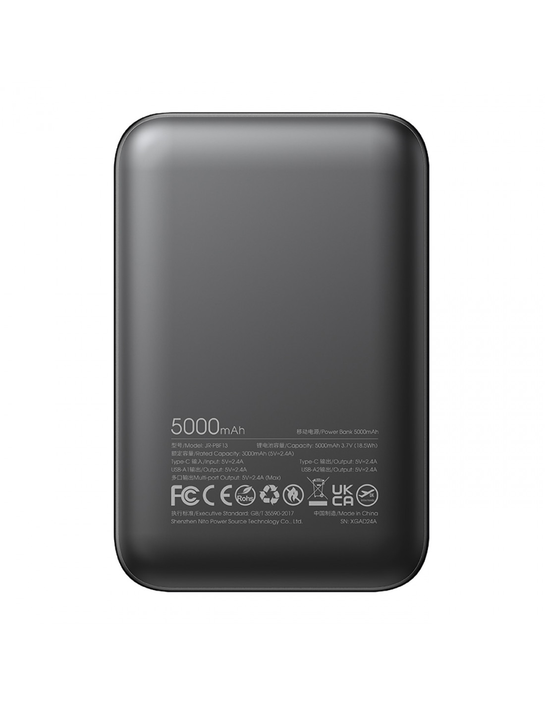 - - Nešiojamoji baterija JR-PBF13 5000mAh 2.4A 2x USB-A 1x USB-C - juoda