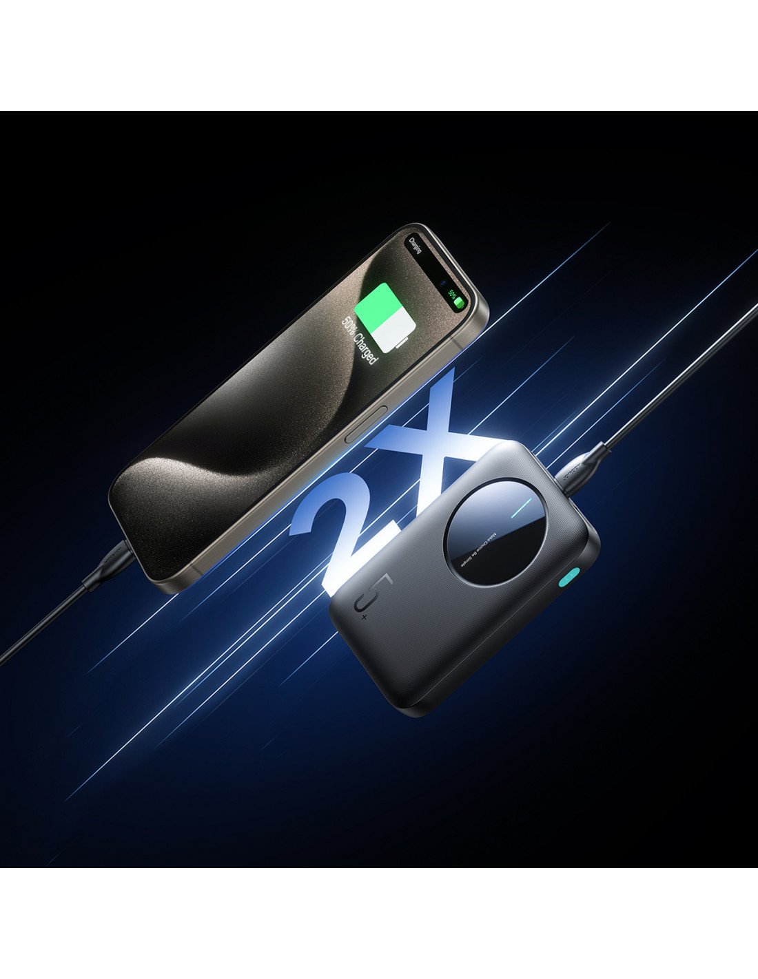 - – Sutrumpina įkrovimo laiką iki pusės . „Joyroom JR-PBF13“ išorinė baterija įkrauna įrenginius dvigubai greičiau, todėl „iPhone 15 Pro“ galite įkrauti 50 % vos per 45 minutes.