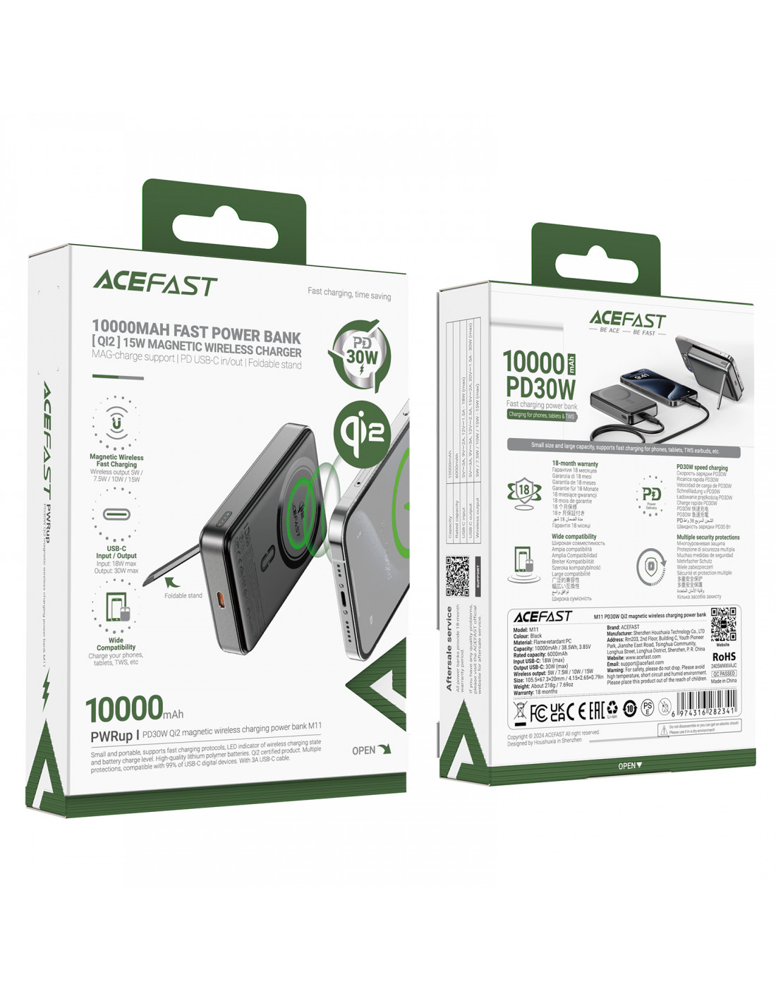„Acefast M11-10000“ aprūpintas aukštos kokybės ličio polimerų baterijomis, kurios užtikrina ilgalaikį naudojimą ir stabilų įkrovimą.