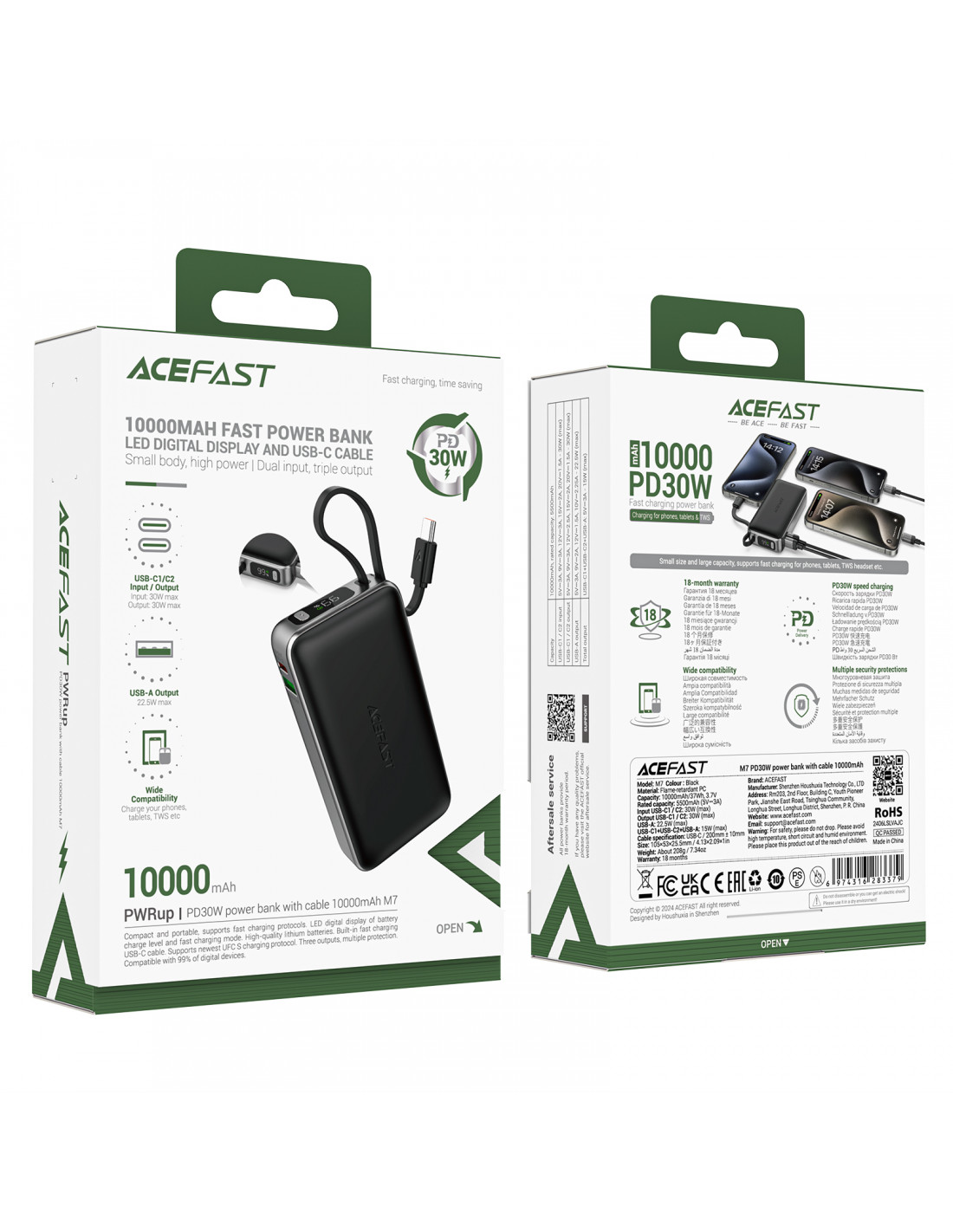 „Acefast M7“ aprūpintas sertifikuotomis apsaugos sistemomis, kurios apsaugo nuo perkrovimo, perkaitimo ir trumpojo jungimo. Galite įkrauti savo įrenginius nesijaudindami dėl jų saugumo.