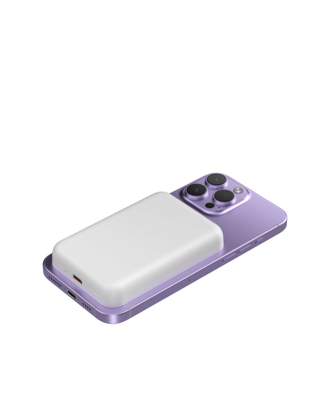- - Magnetinė išorinė baterija 10000 mAh su 25 cm USB-C laidu - balta
