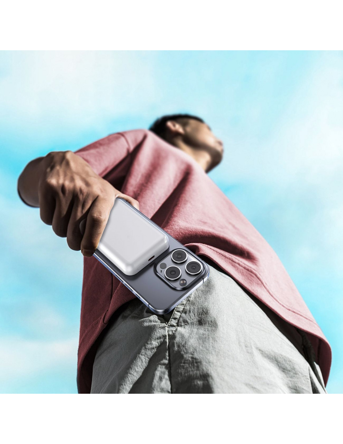 „Wozinsky WRW349YWS“ išorinė baterija aprūpinta stipriais magnetais, kurie puikiai veikia su „MagSafe“ sistema, užtikrindami stabilų ir patogų įkrovimą be susivėlusių laidų.