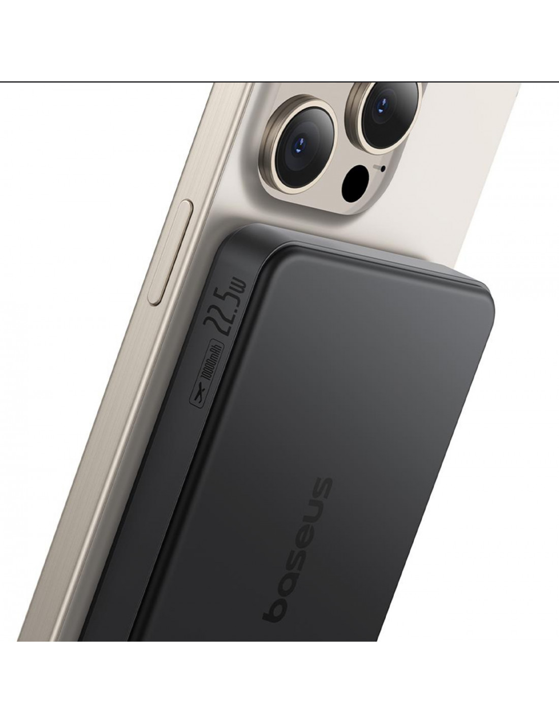 - - Išorinė baterija „Airpow II“ 10000mAh Qi2 MagSafe 22,5 W su USB-C laidu 20 V 3 A 30 cm - juoda