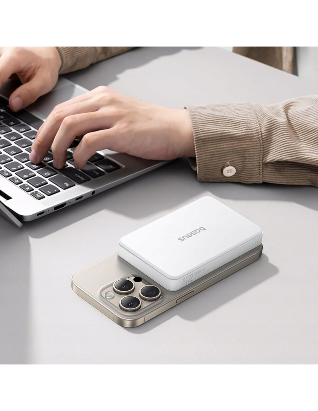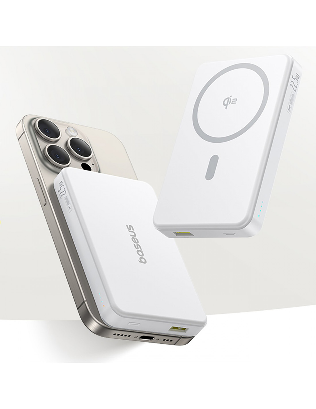 „Baseus Airpow II“ išorinė baterija palaiko „MagSafe“ technologiją, siūlančią greitą 15 W belaidį „Qi2“ suderinamų įrenginių įkrovimą. Magnetinis laikiklis užtikrina stabilų ryšį be atsitiktinių nutrūkimų.