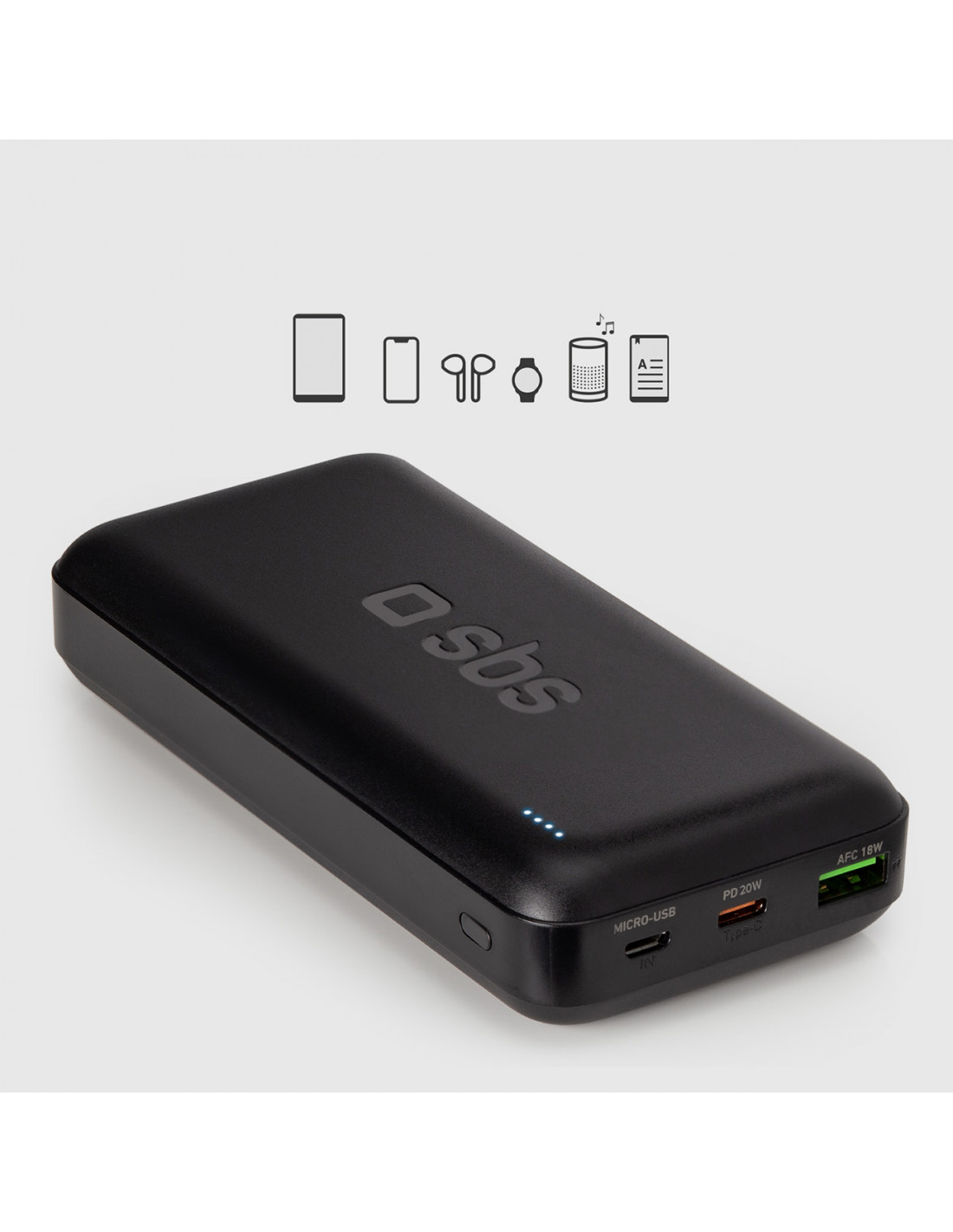„SBS TTBB20000PD20K“ išorinė baterija yra patikimas sprendimas tiems, kuriems bet kokioje situacijoje reikia patvaraus ir efektyvaus maitinimo šaltinio. Dėl didelės 20 000 mAh talpos ir dviejų išvesties prievadų galite vienu metu įkrauti du įrenginius – idealiai tinka aktyviems vartotojams. USB-C prievadas, palaikantis 20 W „Power Delivery“ technologiją, užtikrina itin greitą įkrovimą, o USB-A prievadas su „Adaptive Fast Charge“ technologija – greitą ir saugų įkrovimą. Išorinę bateriją galima įkrauti per „Micro-USB“ arba USB-C, todėl ji universali ir patogi. LED indikatoriai visada rodo, kiek įkrovos liko. Tai puikus kelionių palydovas ir saugus orui.