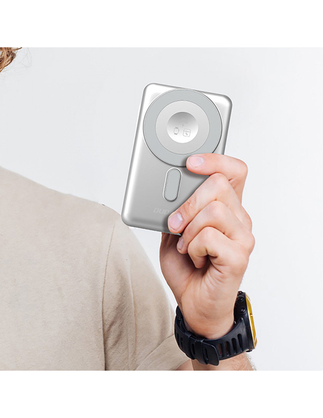 „Dudao K29“ išorinė baterija sujungia eleganciją, novatoriškus sprendimus ir kasdien reikalingą našumą. Turėdami 10 000 mAh talpos ir dvikryptį įkrovimą su 20 W PD technologija USB-C prievade, įkrausite savo įrenginius greičiau nei bet kada anksčiau. Integruoti USB-C ir „Lightning“ laidai reiškia, kad galite pamiršti apie papildomus laidus ir vienu metu įkrauti iki keturių įrenginių – laidiniu arba belaidžiu būdu! Metalinis korpusas ir ištraukiamas stovas su 15 W „MagSafe“ garantuoja komfortą ir ilgaamžiškumą. Įrenginys atitinka lėktuvų ir greitųjų geležinkelių transporto standartus, todėl yra nepakeičiamas kelionių palydovas. Neįtikėtinai plonas, stilingas ir praktiškas „Dudao K29“ yra patikimas pasirinkimas visiems, kurie vertina modernumą ir patogumą.