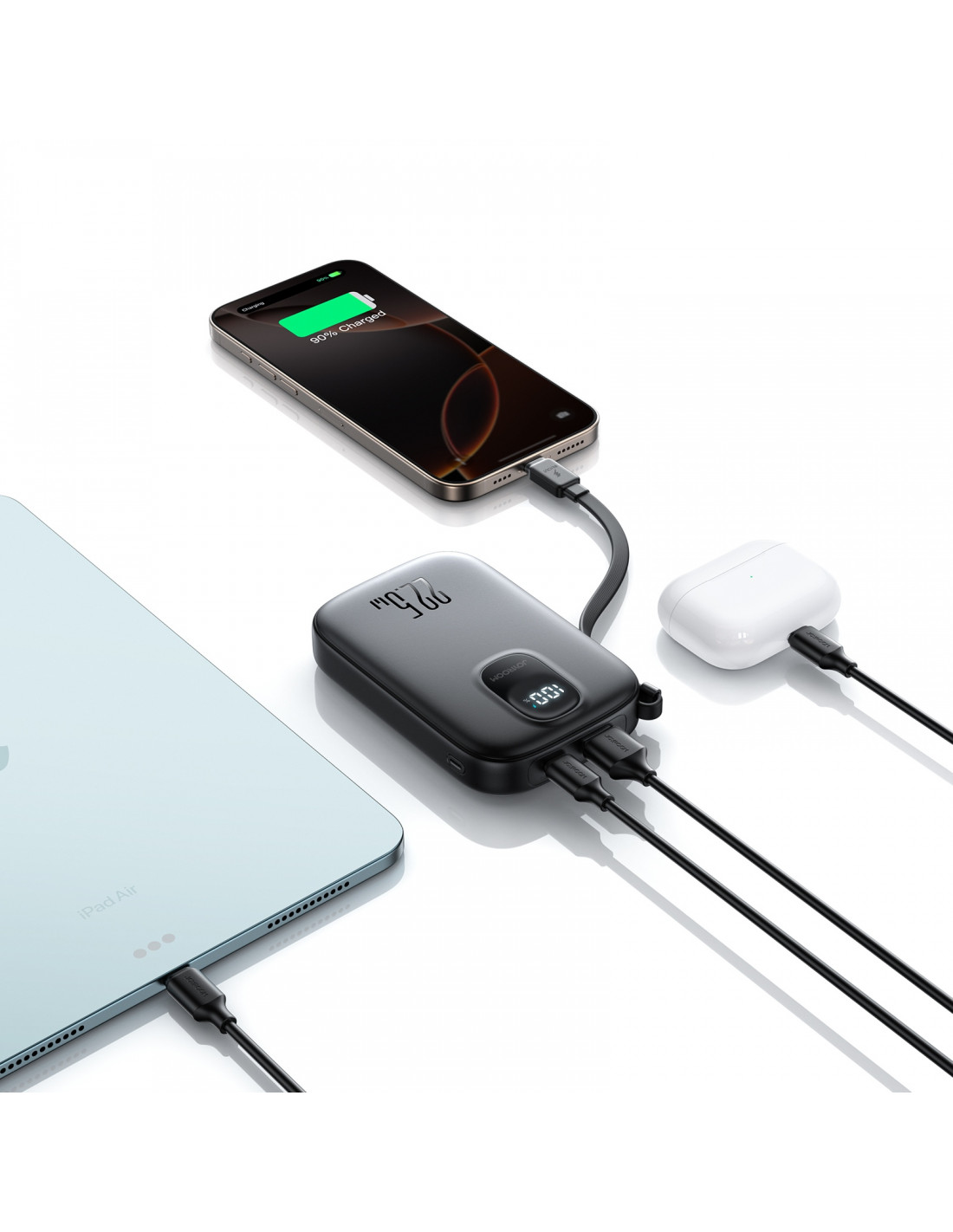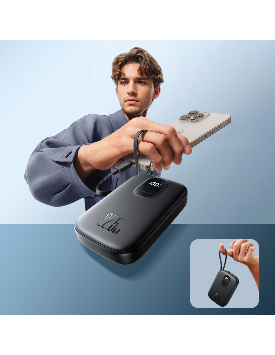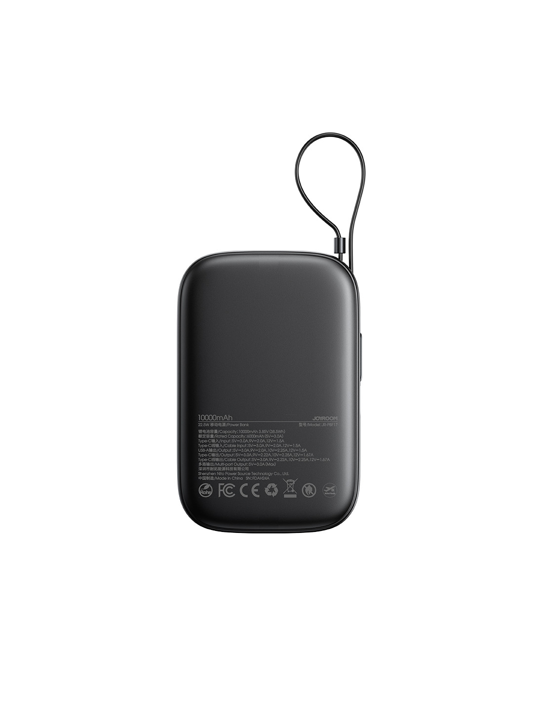 „Joyroom JR-PBF17“ išorinė baterija yra patikimas ir stilingas maitinimo šaltinis, skirtas įrenginių su USB-C prievadu naudotojams. Įrengtas integruotas USB-C laidas ir papildomas 25 cm laidas , jis užtikrina patogų ir greitą įkrovimą be papildomų priedų. Turėdamas 10 000 mAh talpą ir iki 22,5 W išėjimo galią , jis leidžia greitai įkrauti išmanųjį telefoną, planšetinį kompiuterį ar ausines bet kokioje situacijoje. Dėl kompaktiško dydžio ir mažo svorio jį lengva nešiotis krepšyje, kuprinėje ar kišenėje. Pažangios saugos funkcijos apsaugo nuo perkaitimo, perkrovos ir trumpojo jungimo, užtikrindamos saugų ir ilgalaikį naudojimą.