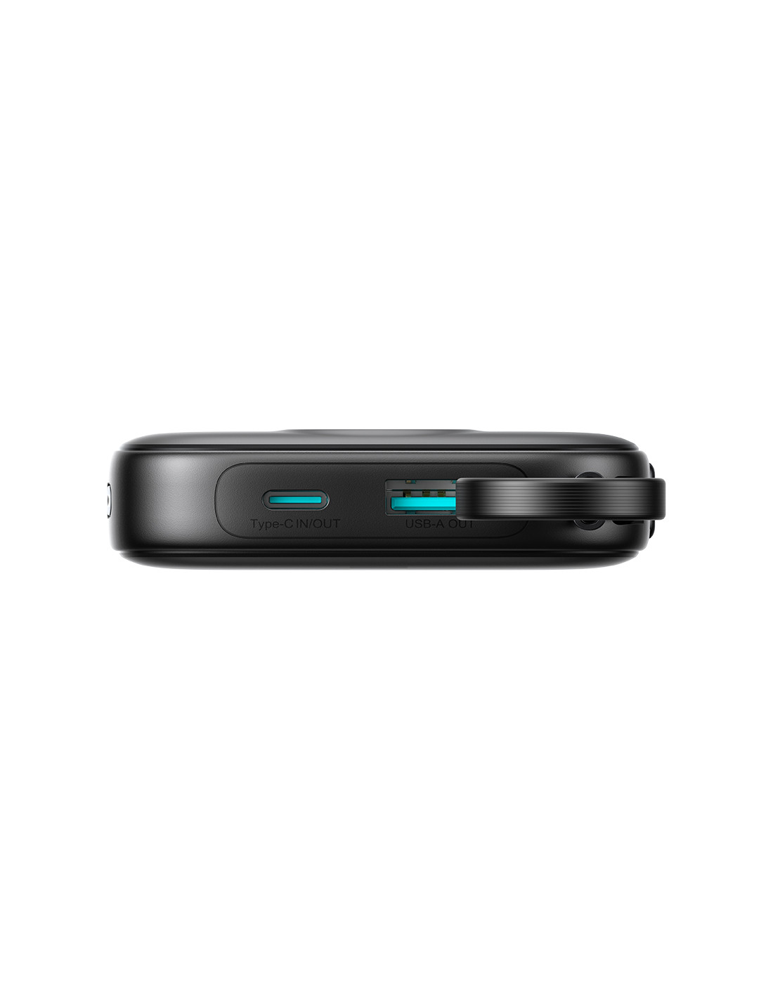 10000 mAh išorinė baterija su integruotu 22,5 W USB-C 0,25 cm laidu - juoda