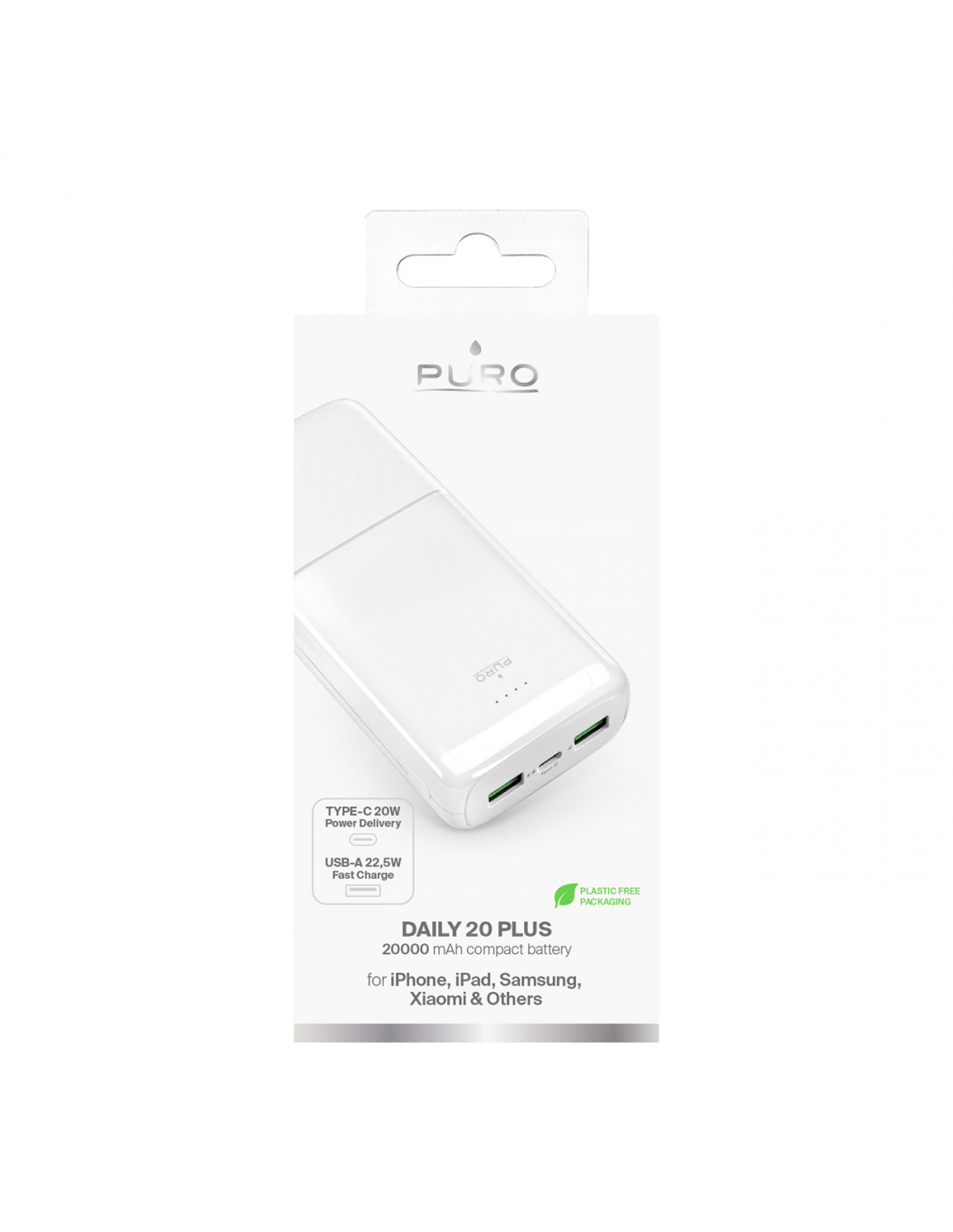 „Puro DAILY 20 PLUS“ 20 000 mAh talpos išorinė baterija turi tris išvestis (2 USB-A ir 1 USB-C), skirtas vienu metu įkrauti kelis įrenginius. Maksimali 22,5 W išvesties galia ir PD bei AFC protokolų palaikymas garantuoja greitą ir efektyvų įkrovimą. Tvirta konstrukcija su ugniai atspariomis medžiagomis užtikrina saugų naudojimą. Išbandykite ją jau šiandien ir mėgaukitės nepertraukiamu maitinimu kelyje, darbe ir kiekvieną dieną.