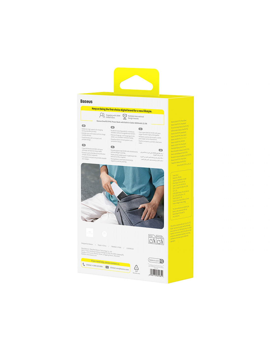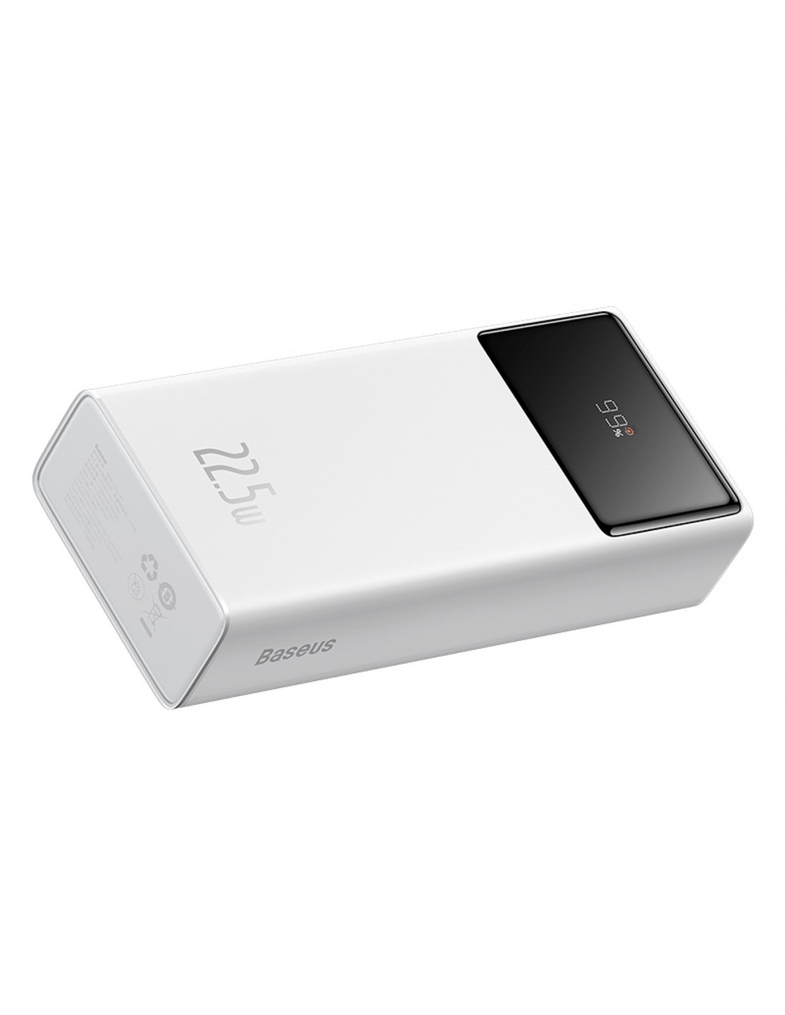 - - Nešiojamoji baterija 30000mAh 22.5W su USB-A - USB-C 3A 30cm laidu - balta