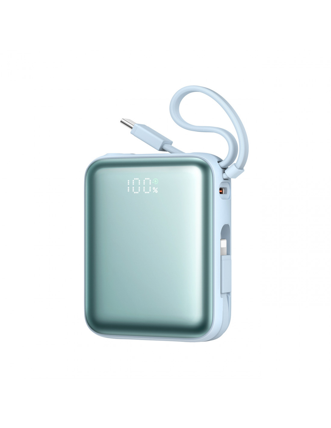- - 10000mAh 22,5W nešiojama baterija su integruotais laidais - mėlyna