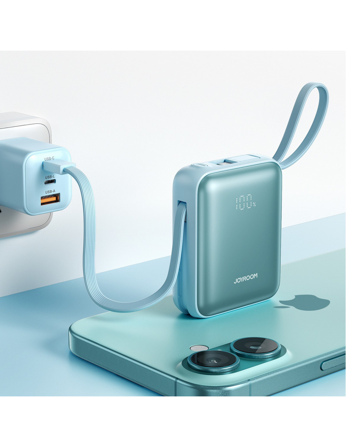 „Joyroom JR-PBF27“ – tai kompaktiška išorinė baterija , kurioje dera 22,5 W greito įkrovimo galia ir išskirtinis nešiojamumo dydis. Du įmontuoti laidai – USB-C ir „Lightning“ – panaikina poreikį nešiotis papildomų laidų, o galimybė vienu metu įkrauti iki trijų įrenginių užtikrina maksimalų patogumą. Skaitmeninis ekranas rodo likusį įkrovą ir greito įkrovimo būseną, leisdamas jums visiškai kontroliuoti išorinės baterijos veikimą. 10 000 mAh talpos pakanka išmaniajam telefonui įkrauti iki dviejų kartų, o minkšti ir patvarūs laidai išlaikė 10 000 lenkimo bandymų, užtikrindami ilgą tarnavimo laiką. Mažas JR-PBF27 dydis ir svoris daro jį idealiu kelionių palydovu, o atitiktis oro linijų reikalavimams užtikrina jo saugumą keliaujant lėktuvu.